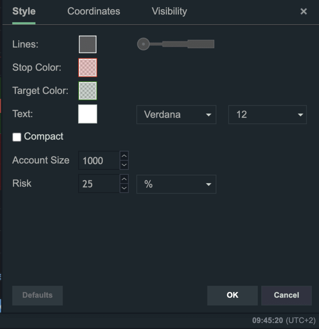 롱/숏 포지션 도구는 트레이딩 포지션의 수익 및 손실을 판단해볼 수 있는 인기있는 도구입니다. 진입가, 익절가, 스탑 로스(손절)를 직접 설정하여 위험 및 보상 비율에 따른 손익비를 확인해보실 수 있습니다.