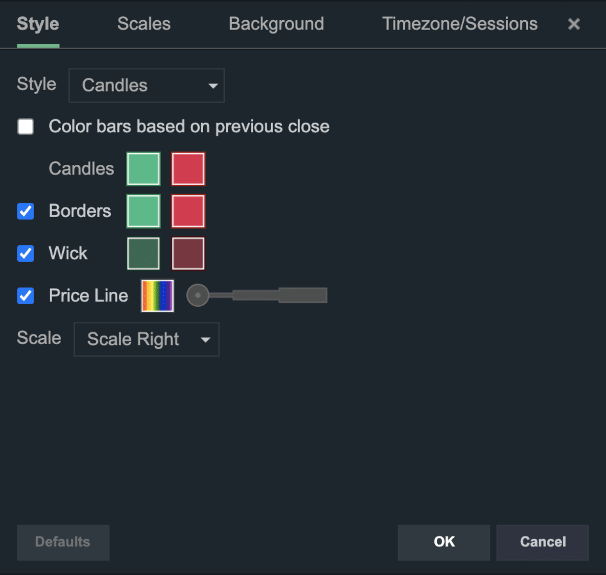 - 스타일 [Style] - 캔들스틱 모양을 변경할 수 있습니다.