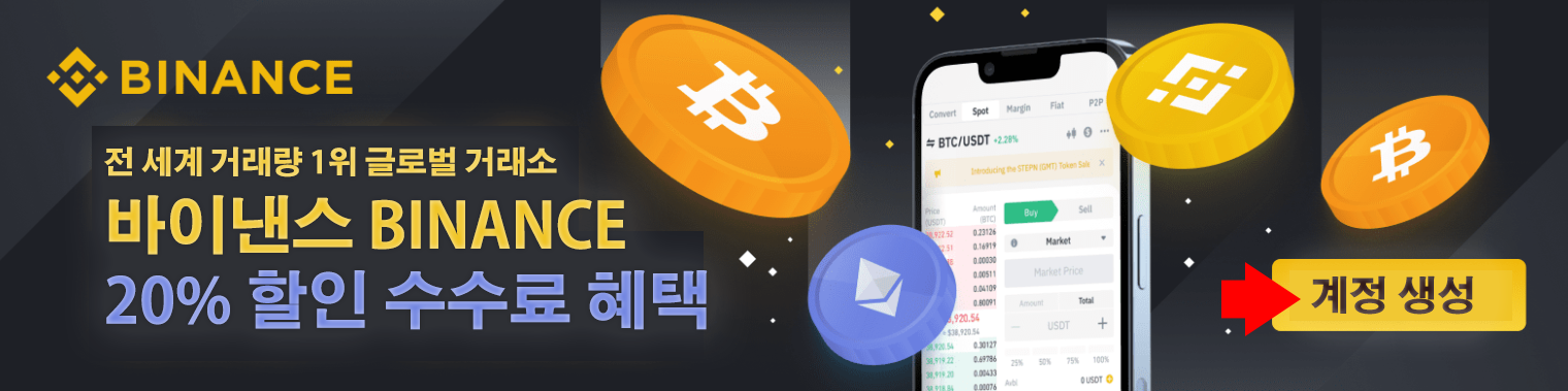 바이낸스 계정이 없는 경우 아래 링크를 통해 가입하고 레퍼럴 프로그램을 생성할 수 있습니다. 가입 시 레퍼럴 코드 JZS3J9QZ 를 입력하면 수수료 20%를 평생 할인받을 수 있습니다.