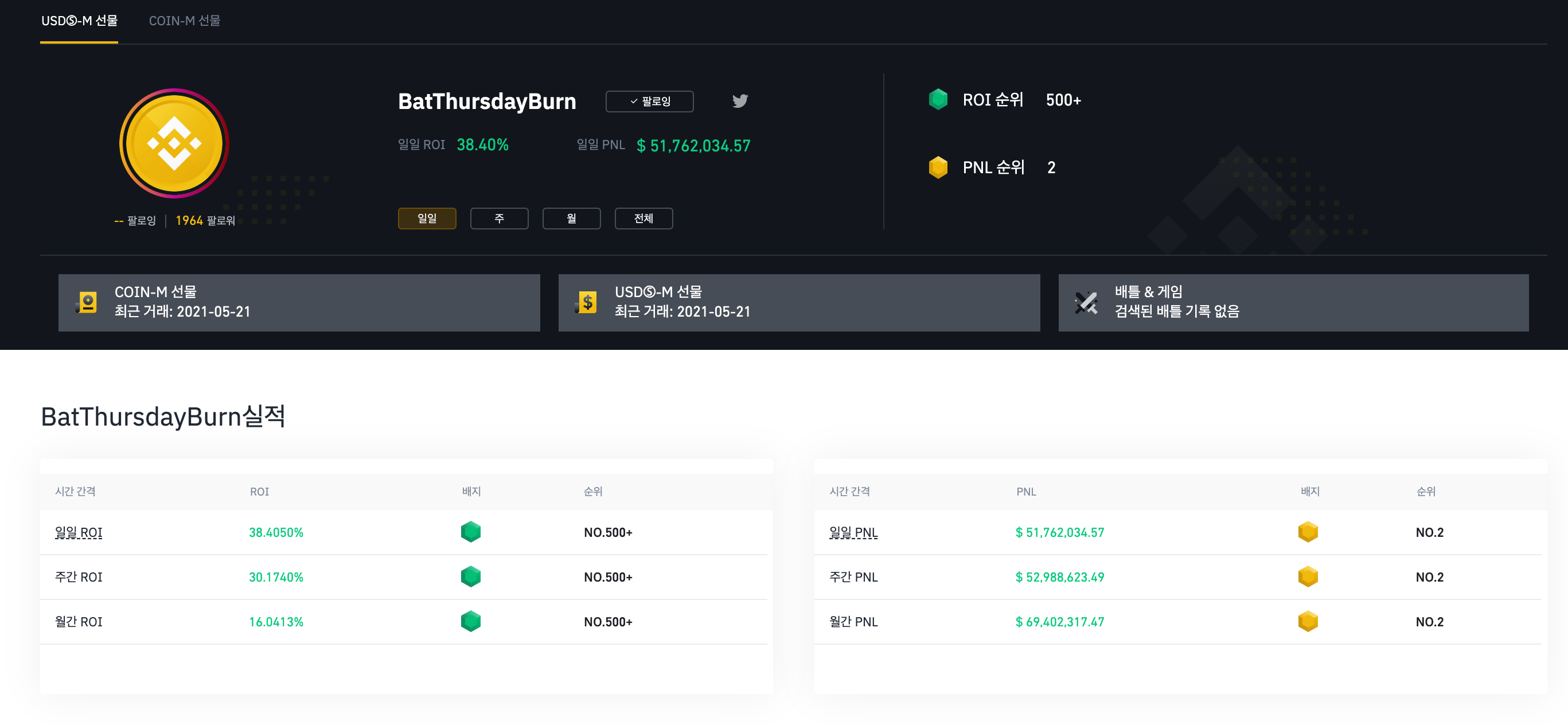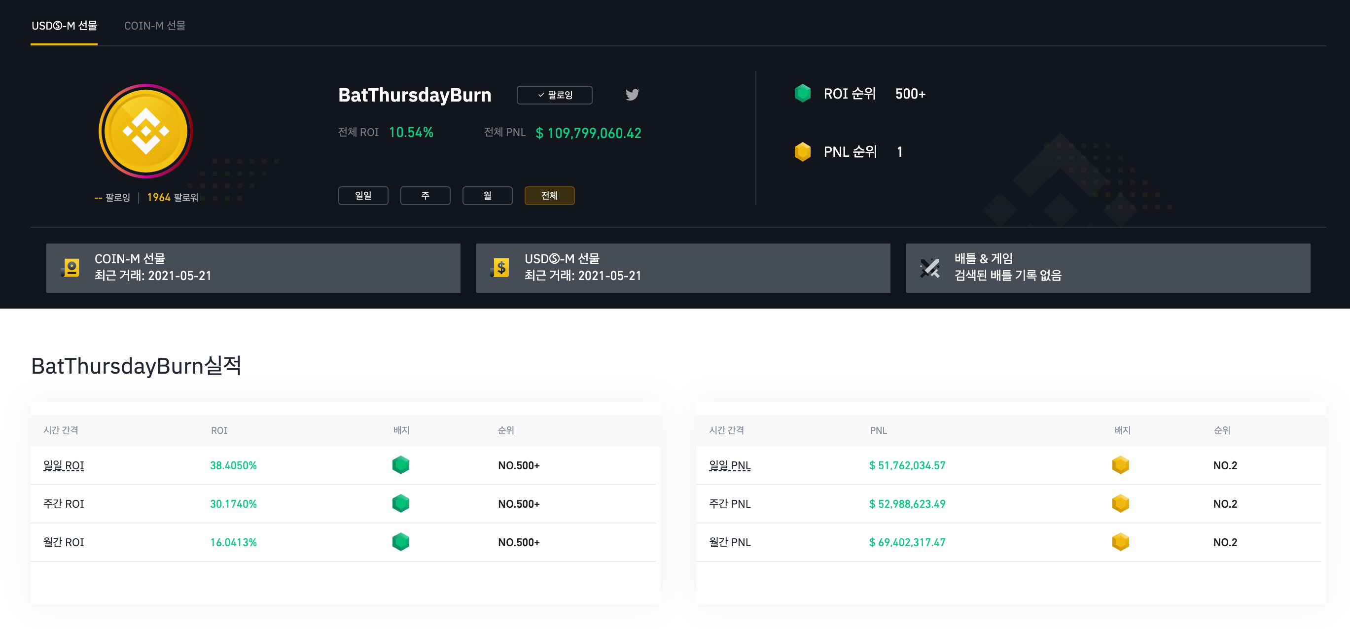 | 바이낸스, 비트코인 선물 거래 2, 3, 4월 수익 인증 (0) | 2021.05.17 |