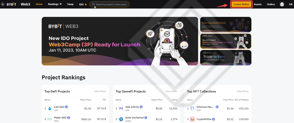 방금 생성한 웹3 지갑을 사용하여 추가 수익을 얻고 싶으신가요? 바이비트 웹3.0 페이지에 접속하여 바이비트 IDO와 같은 토큰 세일 및 추가 이벤트를 확인해보시기 바랍니다.