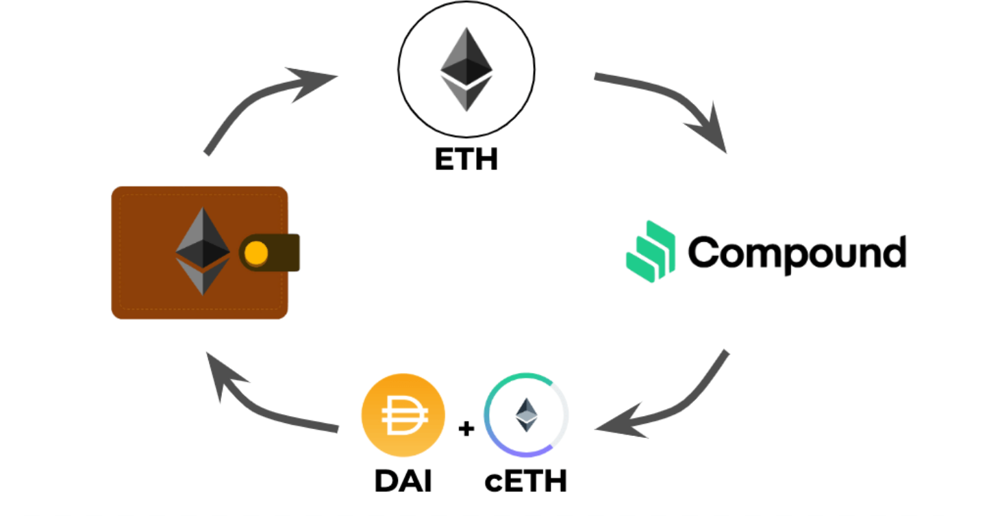 예를 들어, 컴파운드를 이더리움에 예치하고, 이를 담보로 스테이블코인을 대출할 수 있습니다. 대출한 자산은 자유롭게 사용할 수 있으며, 이자율은 수요 및 공급에 따라 알고리즘에 의해 결정됩니다.