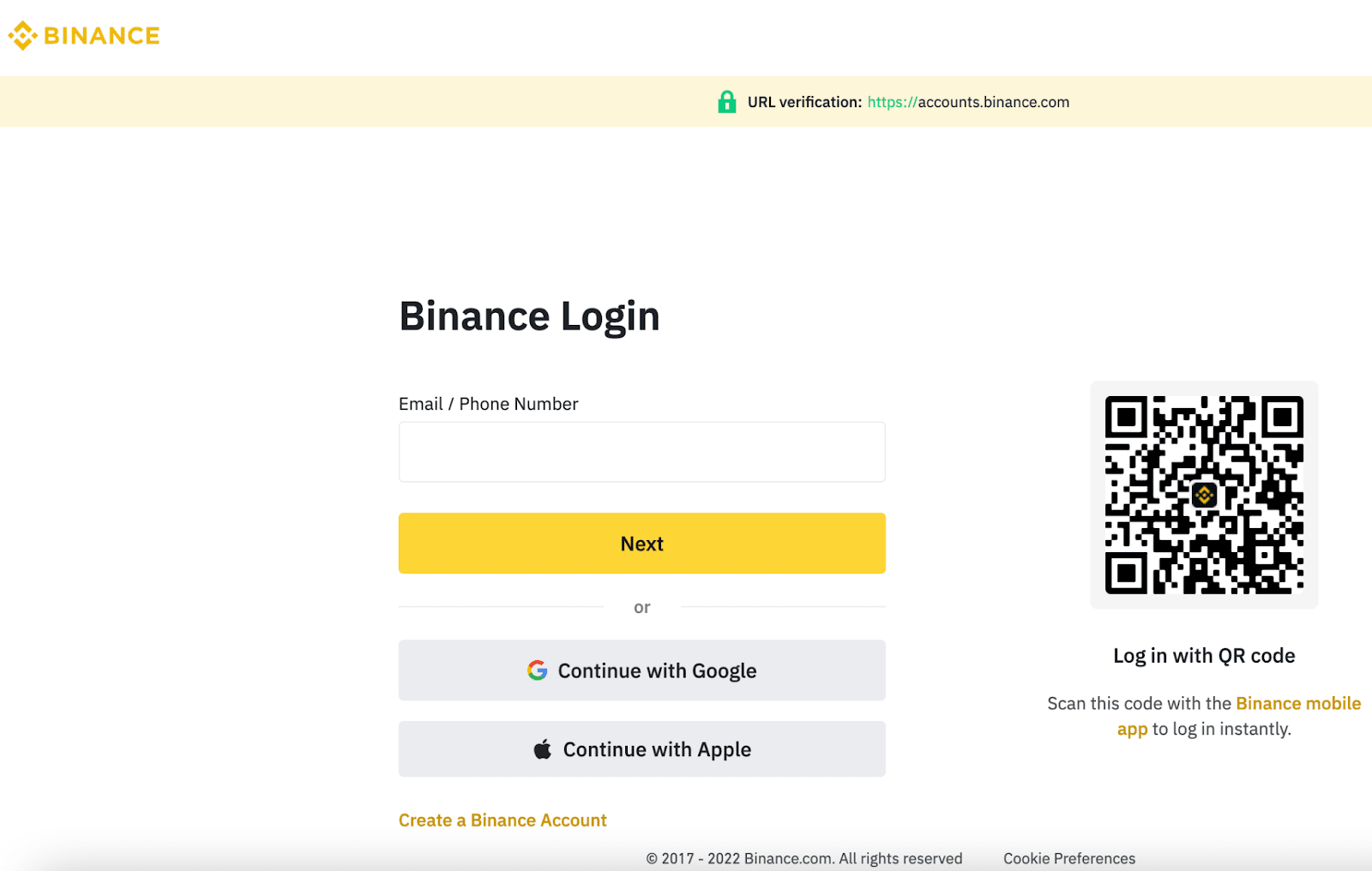 1. 바이낸스 로그인 페이지로 리디렉션됩니다. 바이낸스 계정 정보를 입력하고 로그인 [Login]을 클릭합니다.