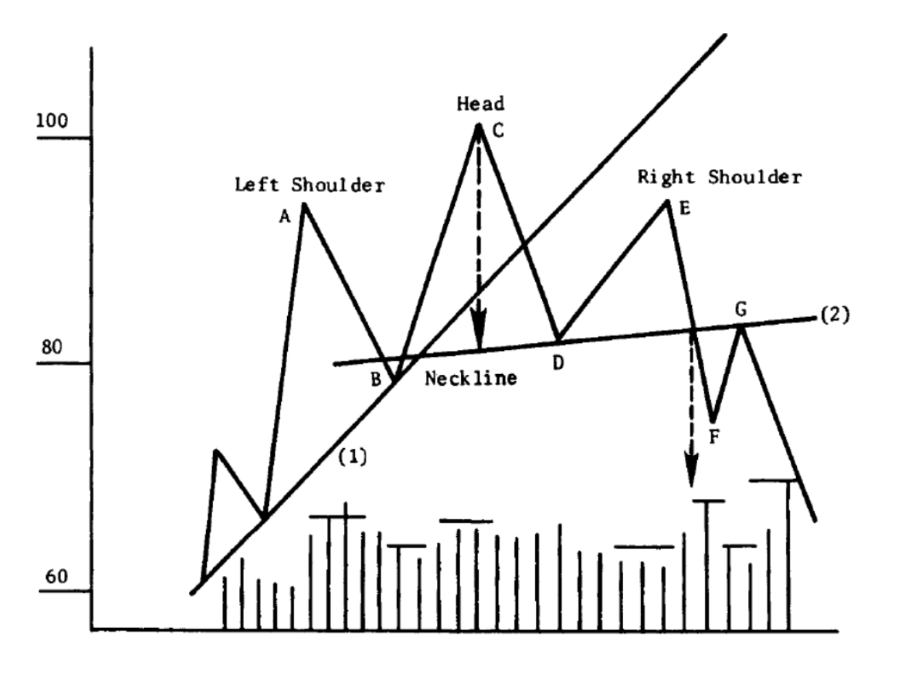정리하자면 헤드 앤 숄더 패턴이란 상승장이 끝나갈 무렵 거래량이 줄어들며 추세 반전이 일어날 수 있음을 알려주는 패턴이라고 할 수 있습니다.