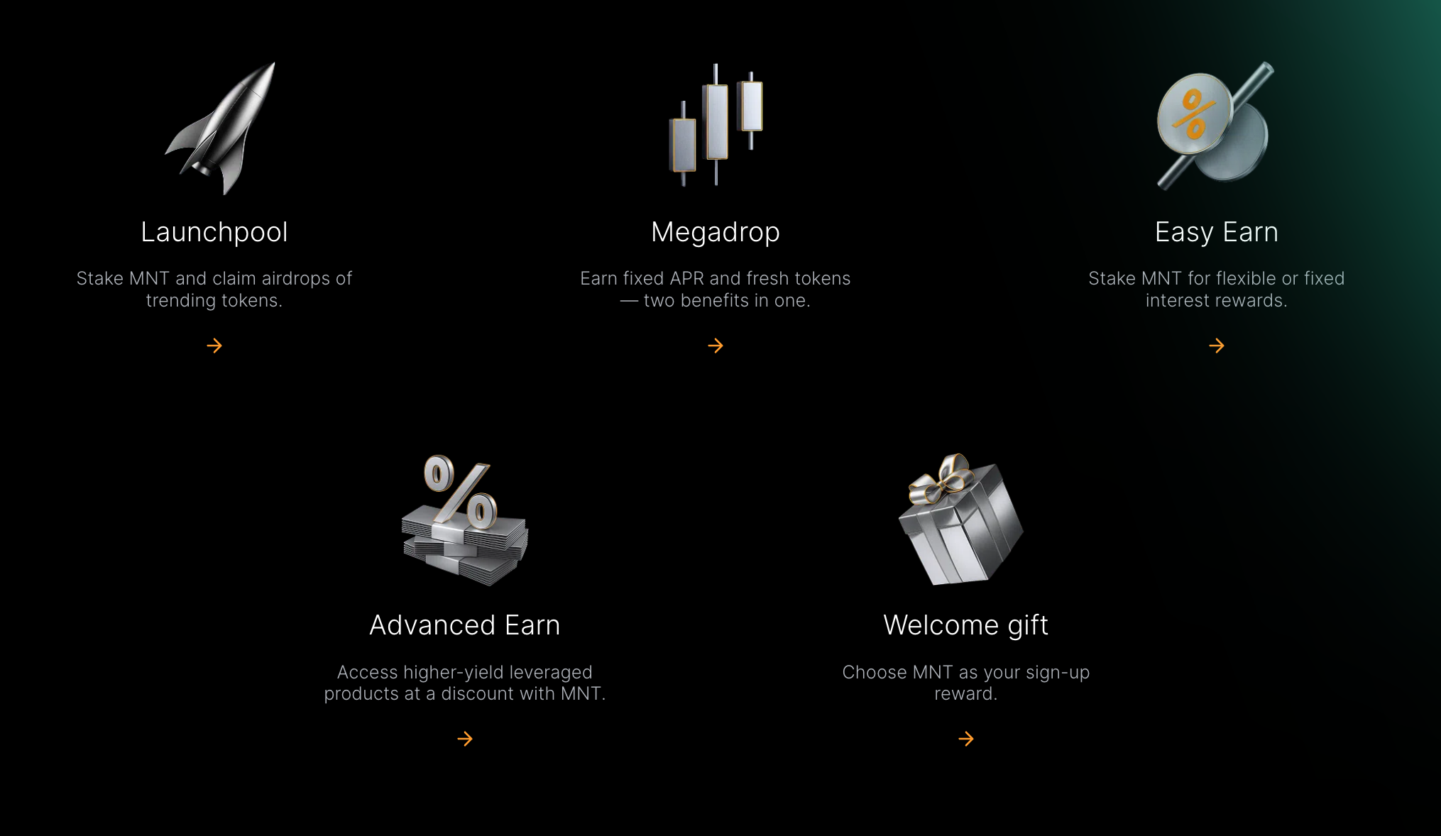 바이비트 거래소에서 진행하는 런치풀과 메가드롭은 사용자들의 가장 큰 인기를 얻고 있는 이벤트 중 하나입니다. $MNT 보유자는 런치풀과 메가드롭에서 맨틀 코인을 스테이킹하고 신규 상장 코인 에어드랍을 받을 수 있습니다.