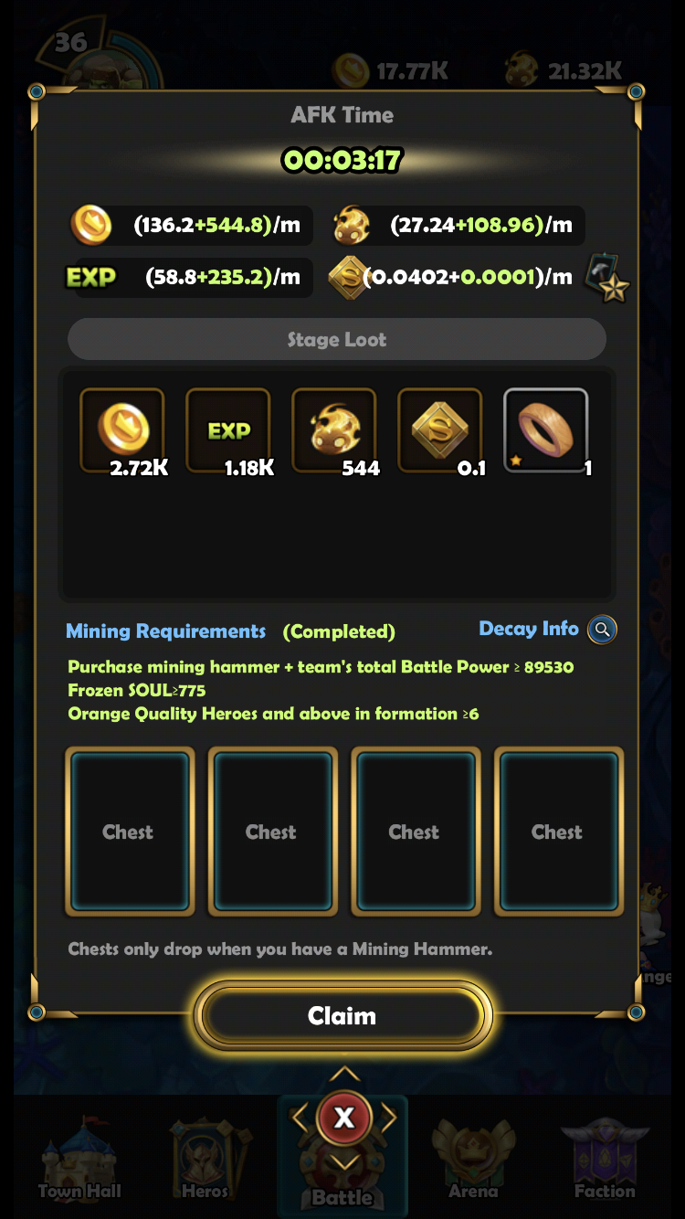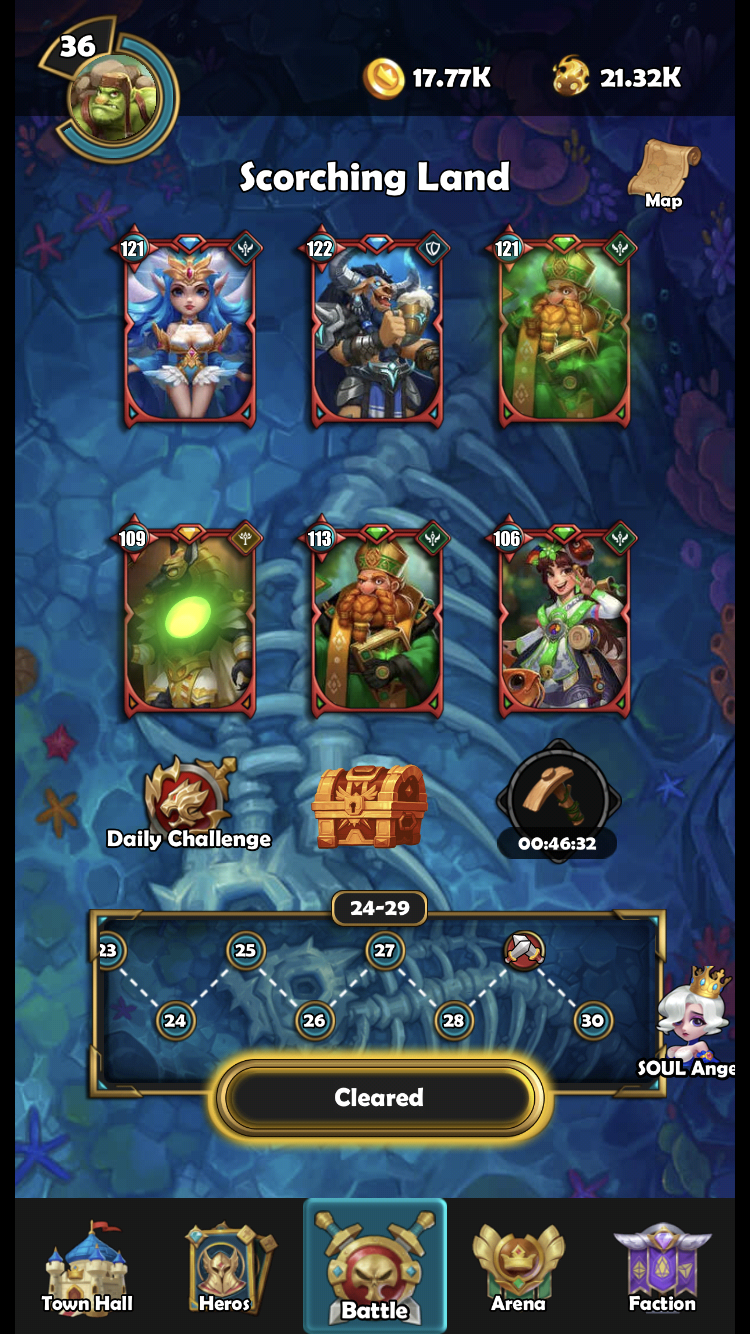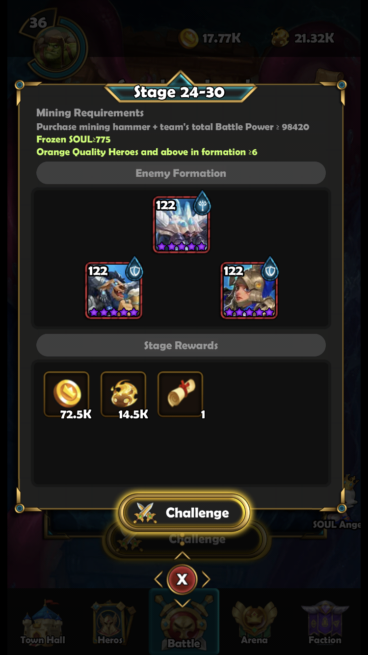 그간 지난 스테이지에 대한 마이닝 디케이[채굴 감소]가 왜 진행되는지 궁금했는데요. 바로 이렇게 궁금증을 해결할 수 있었습니다. 급작스럽게 영웅을 판매하거나, 소울 동결을 해제할 경우에는 이렇게 뒷 스테이지로 돌아가면 소울 코인 채굴을 계속하실 수 있습니다!