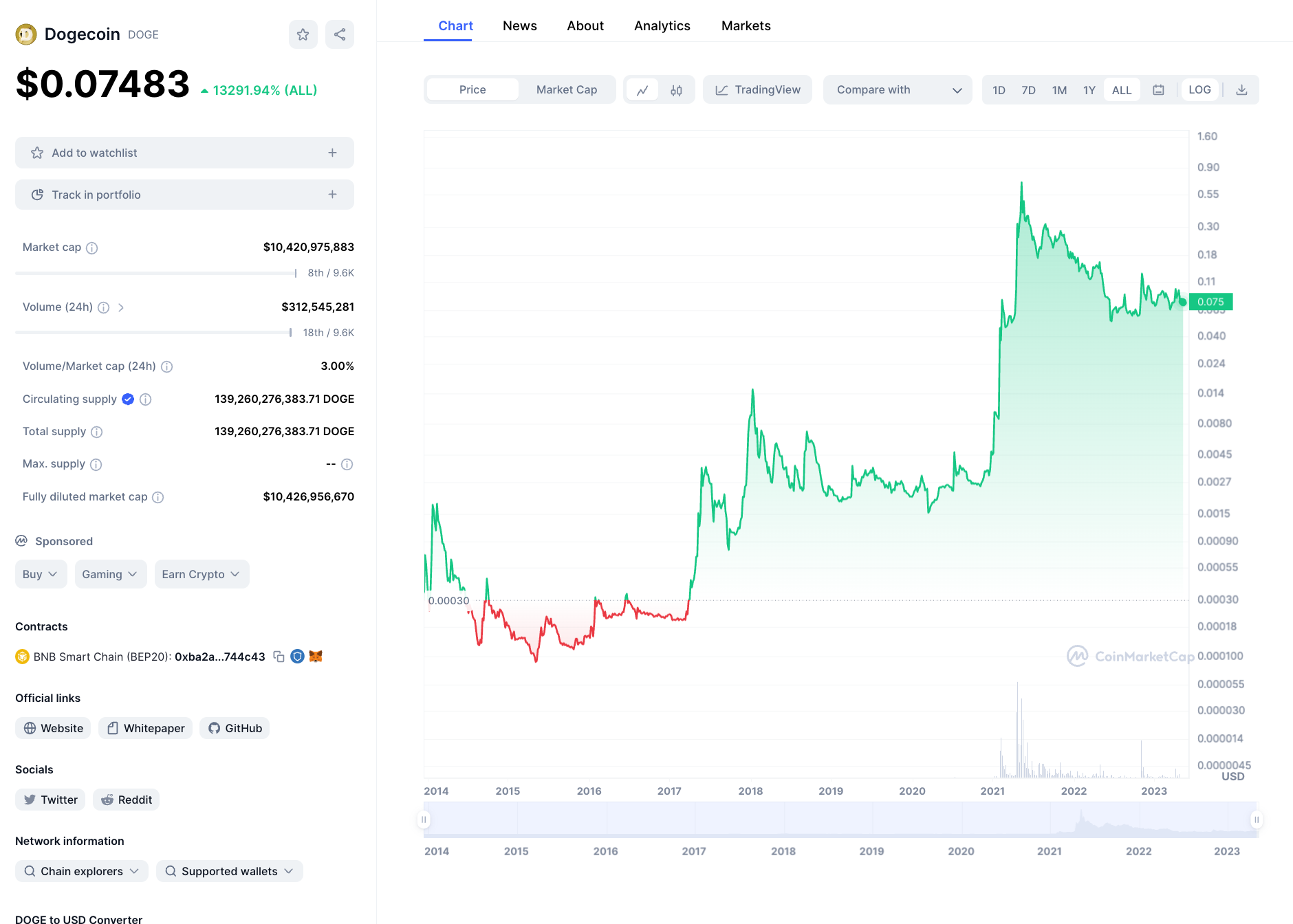 최초의 밈 코인은 도지 코인(DOGE)입니다. 도지는 2013년에 첫 출시되었는데요. 일본의 시바견의 인기 밈인 도지에서 영감을 얻었습니다. 도지는 첫 출시 이후 8,000% 이상 가까운 상승을 보이며, 밈 코인이라는 새로운 섹터를 만들어내었습니다.