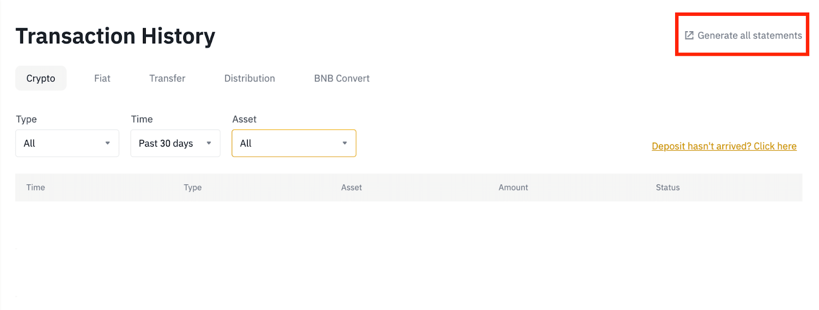 이제 [Transaction History] - [Generate all statements]으로 이동하세요. 생성된 명세서 옆에 있는 [Download]를 클릭하여 다운로드할 수 있습니다. 명세서 다운로드 링크는 7일 동안 유효합니다. 가능한 한 빨리 다운로드하시기 바랍니다.