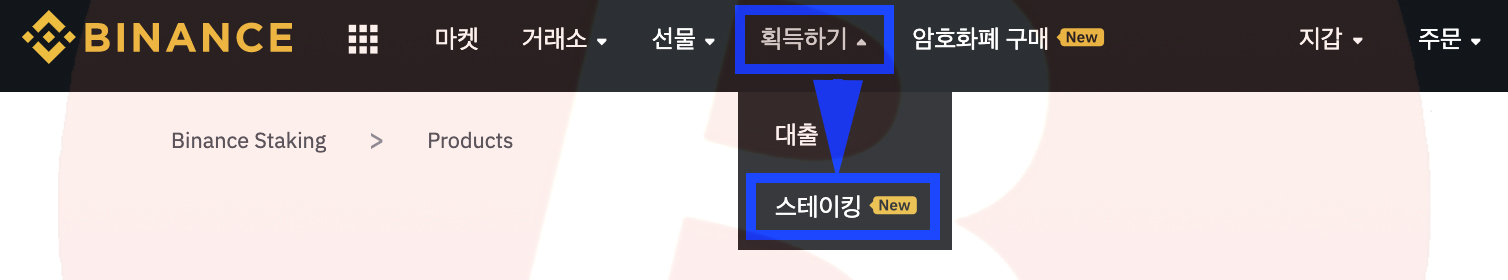 바이낸스 홈페이지에 접속한 다음 획득하기(Earn) 탭으로 들어갑니다. 그곳에서 스테이킹 탭으로 들어가면 지원하는 코인 목록과 함께 해당 코인의 추정 수익율을 함께 확인할 수 있습니다.