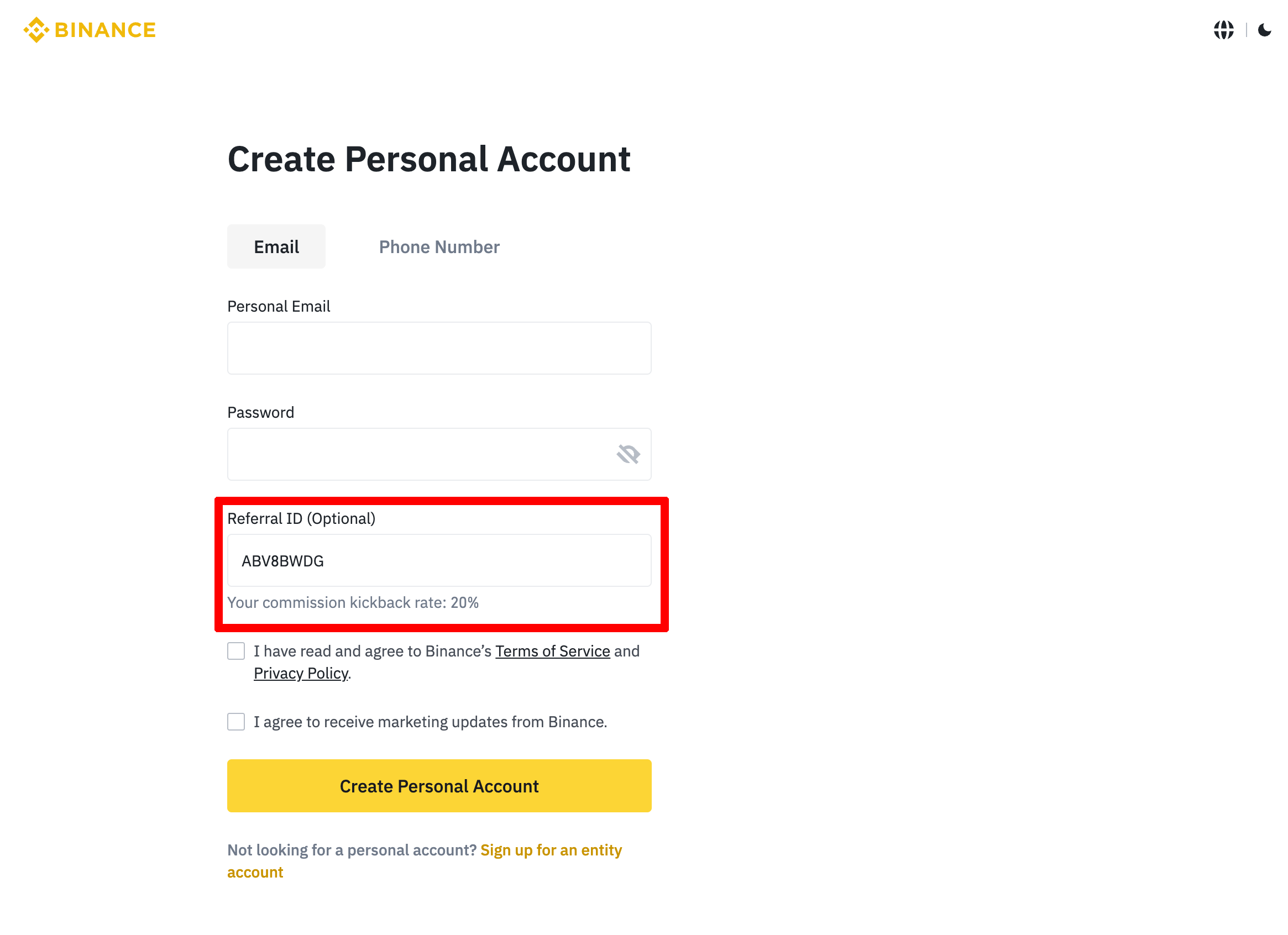 레퍼럴 코드는 가입 시 딱 한 번만 입력하실 수 있으니 꼼꼼하게 확인하시기 바랍니다. 입력되어 있지 않다면 코드를 따라서 직접 입력하고 킥백 비율 [Kickback Rate]이 20%로 표시되는지 확인합니다.
