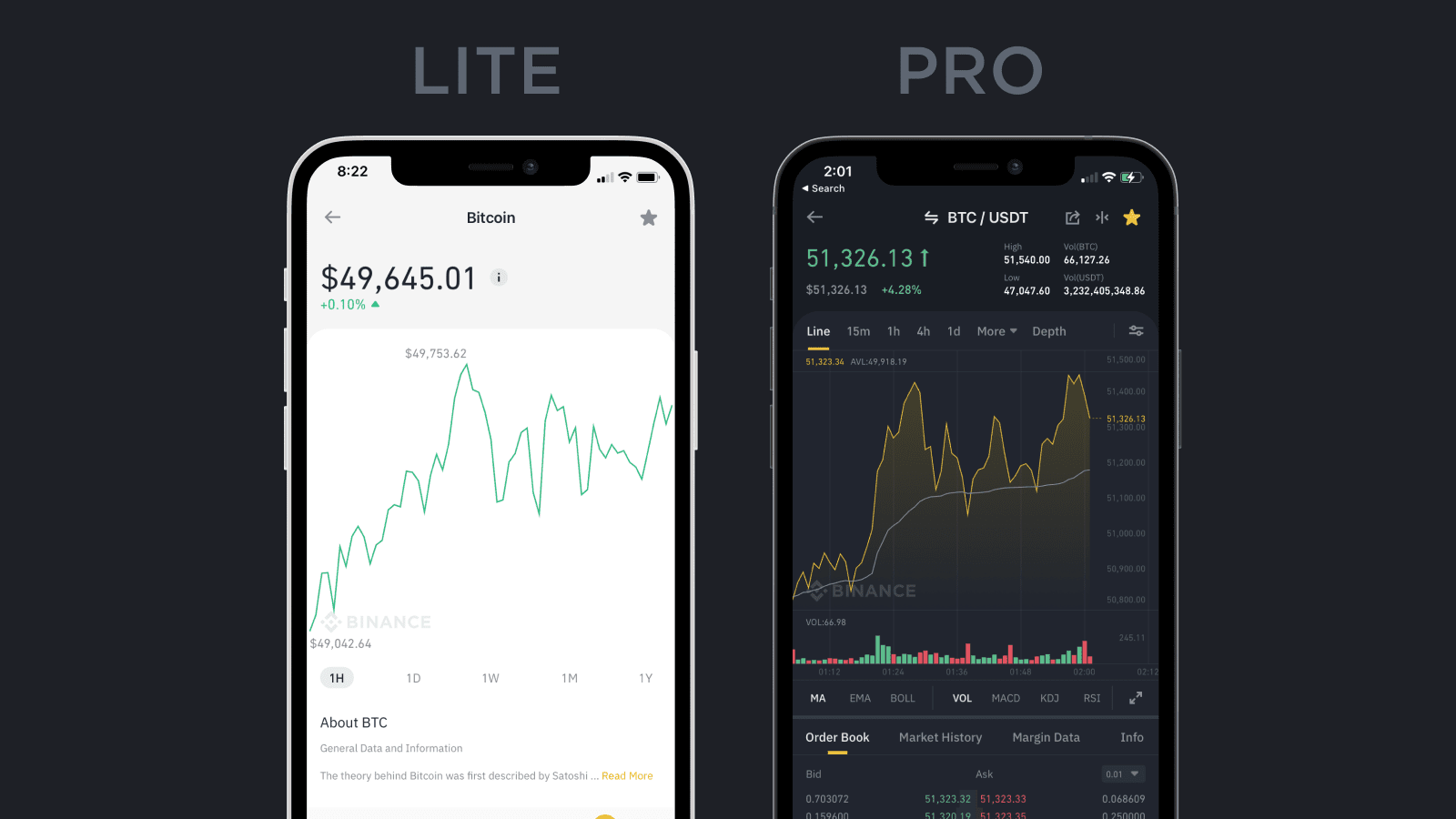 바이낸스 라이트는 암호화폐를 처음 시작하는 사용자에게 적합하며, 현물 거래만 가능합니다. 반면, 바이낸스 프로는 선물, 옵션, 마진 등의 모든 거래를 사용할 수 있으며 보다 전문적인 트레이더에게 적합합니다.