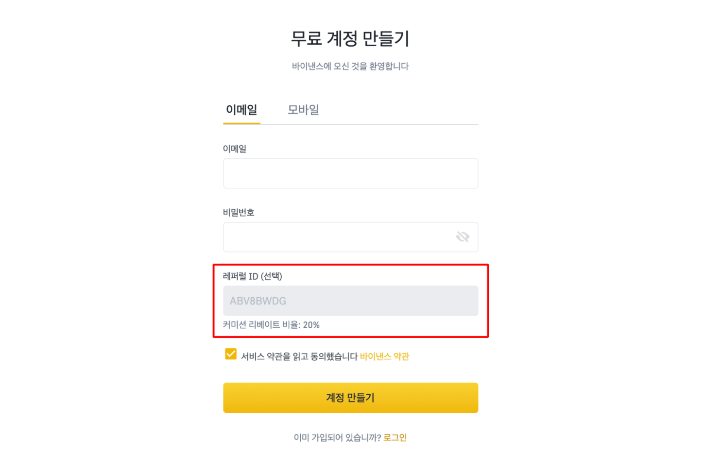 바이낸스 레퍼럴 ID 입력하고 20% 할인 받기