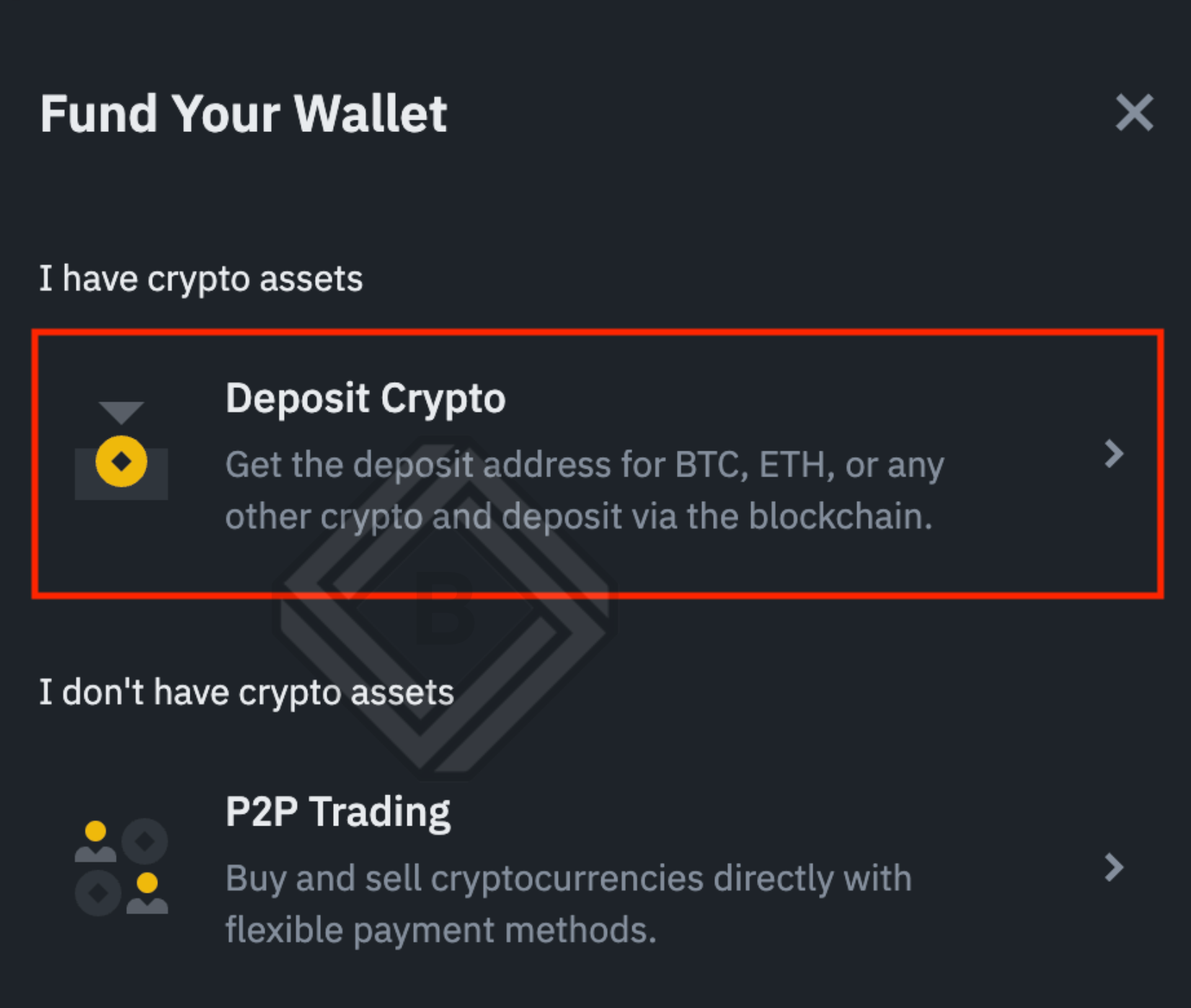 1. 바이낸스 거래소에 로그인 한 다음 우측 상단의 [Deposit] 섹션으로 이동합니다.