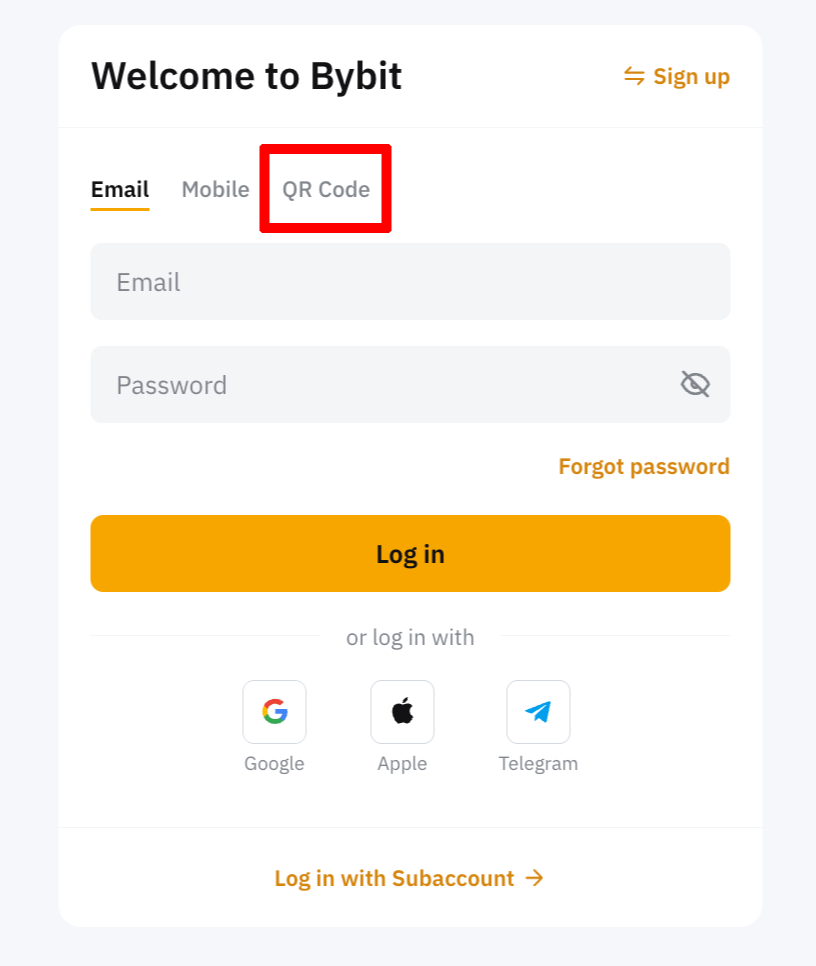 안녕하세요. 비트펑크입니다. 이번 글에서는 QR코드를 사용해서 바이비트 거래소에 로그인하는 방법에 대해 살펴보도록 하겠습니다. QR코드 로그인을 사용하면 비밀번호를 입력하지 않아도 되기 때문에 더욱 빠르고 간편하다는 장점이 있습니다.