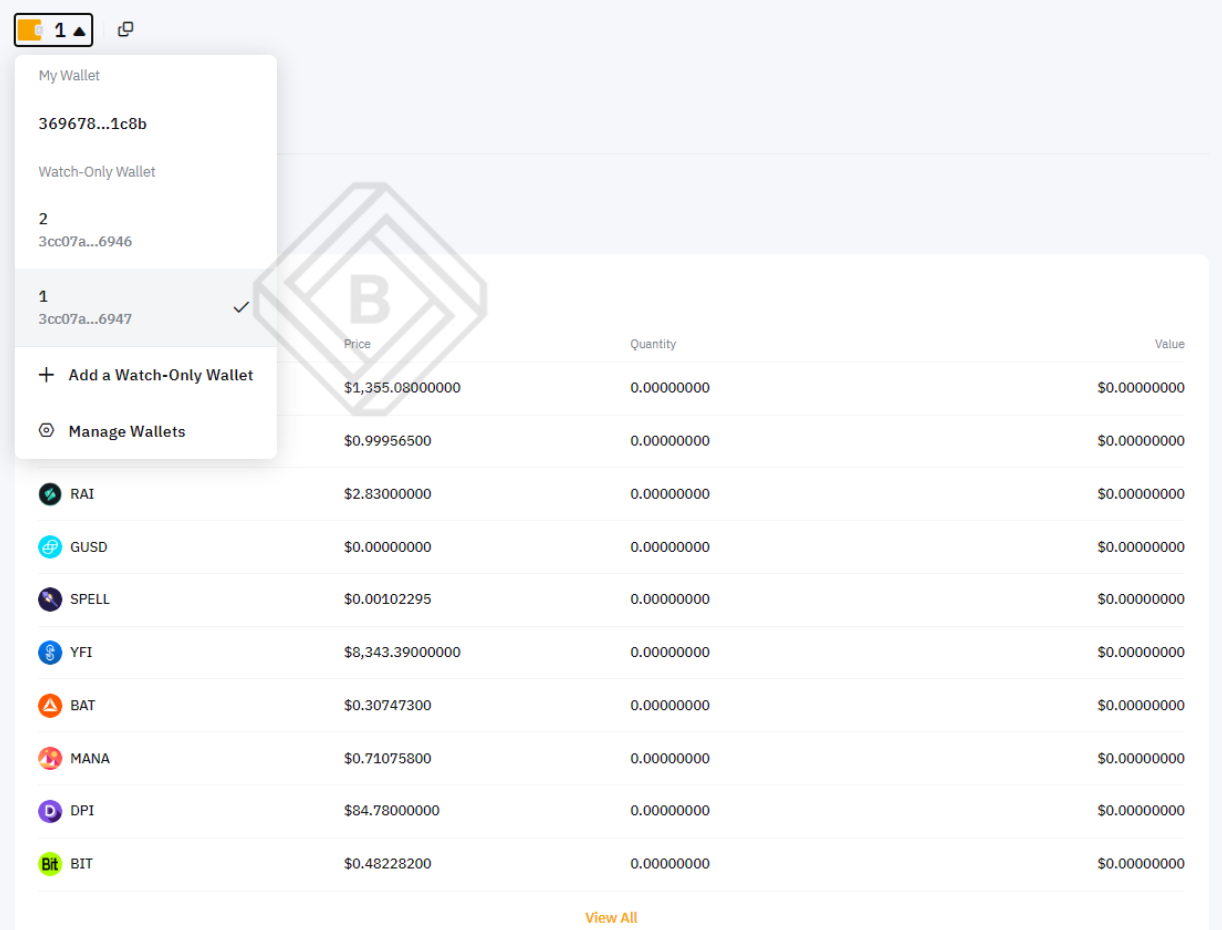 3단계: 보기 전용 지갑에서 지갑 주소를 선택하면 자산, 가격, 수량, 가치 등 자세한 정보를 볼 수 있습니다.