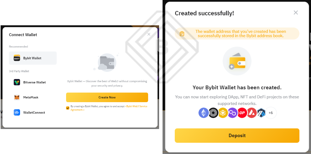 3단계: [지금 만들기]를 클릭해 바이비트 지갑을 생성하면, 바이비트 월렛이 생성됩니다.