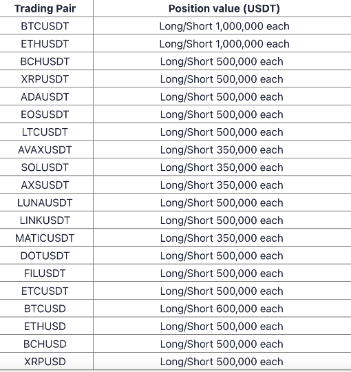 거래할 선물 거래 쌍을 선택한 다음 "카피 시작"을 클릭하여 주문을 열 수 있습니다. 카피 트레이딩을 개시할 수 있는 코인 별 최대 한도는 다음과 같습니다.