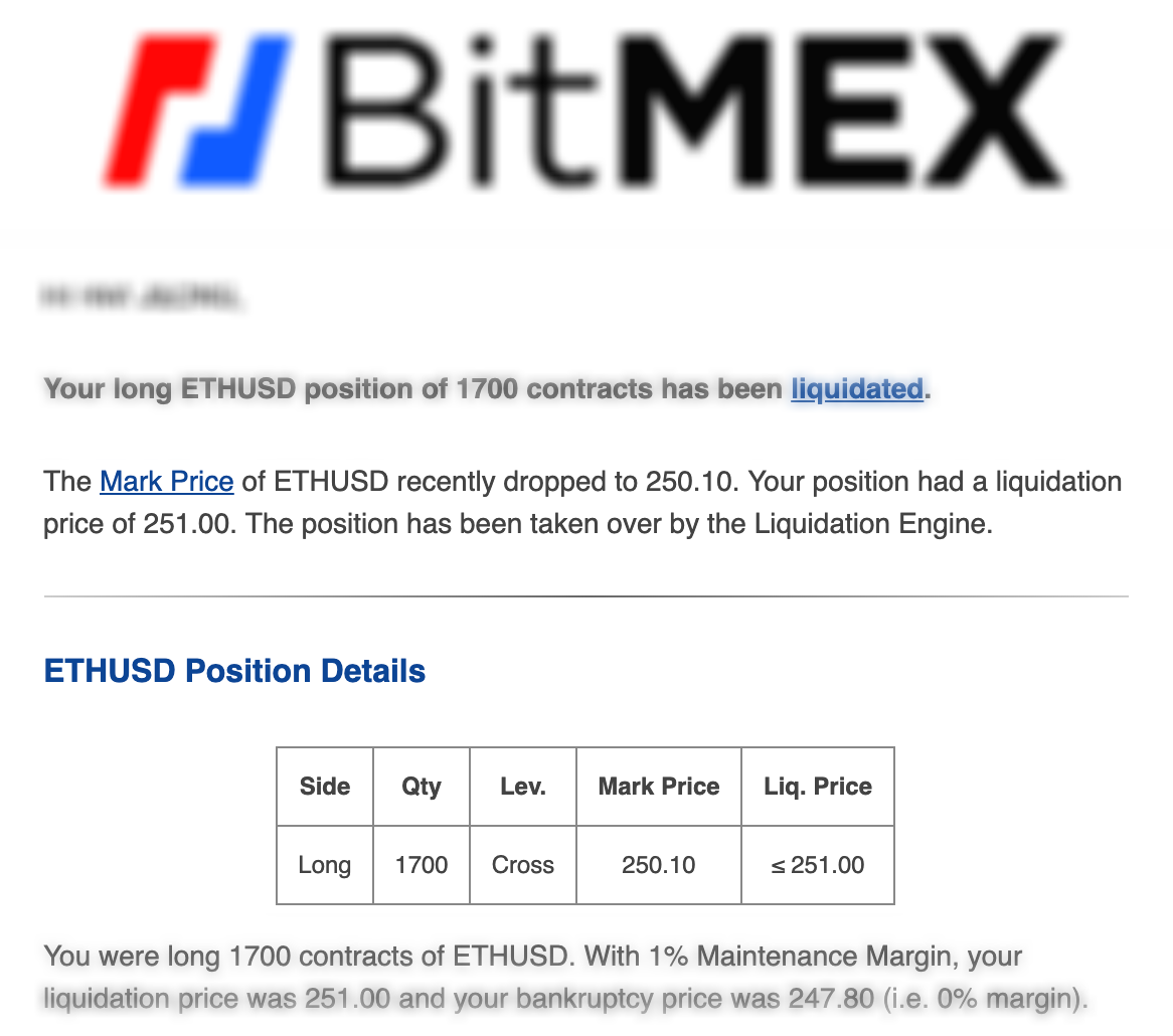 비트멕스를 경험해 보신 분들이라면 다음과 같은 편지 한통은 일단 받고 시작하실 거 같습니다. '안녕하세요. 당신의 계약이 청산(liquidated)되었어요. 헤헷.' 하는 이메일이죠. 이건 사실 비트멕스의 문제가 큽니다. 25배, 50배, 아니 100배까지 레버리지를 올릴 수 있게 해놓았으니 말이죠. 제 생각엔 10배 미만으로 지정되어야 한다고 생각합니다만, 뭐 거래소의 맘이죠. 유저들은 한 번 손해를 보면 이를 만회하기 위해, 혹은 일확천금을 노리기 위해[일명 혁명빔 혹은 떡락빔] 고배에 손을 댑니다. 이건 초보뿐만 아니라 중수, 고수들도 마찬가지인 거 같습니다.