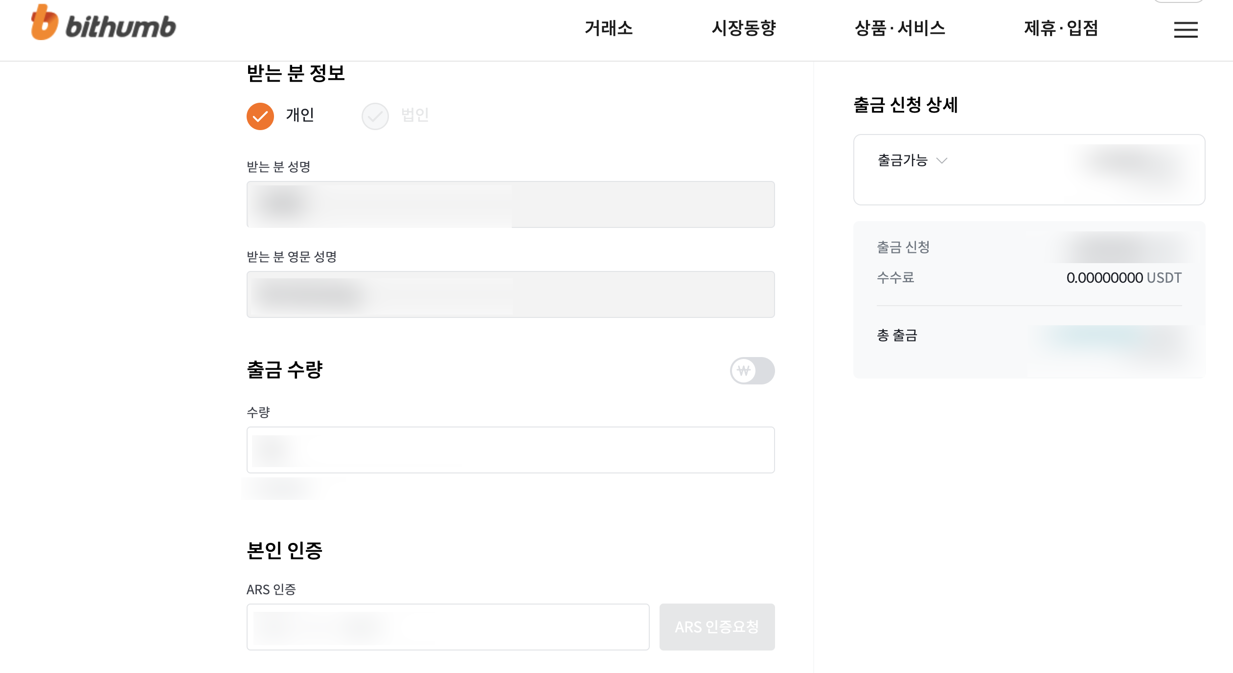 5. USDT 판매 및 원화 출금