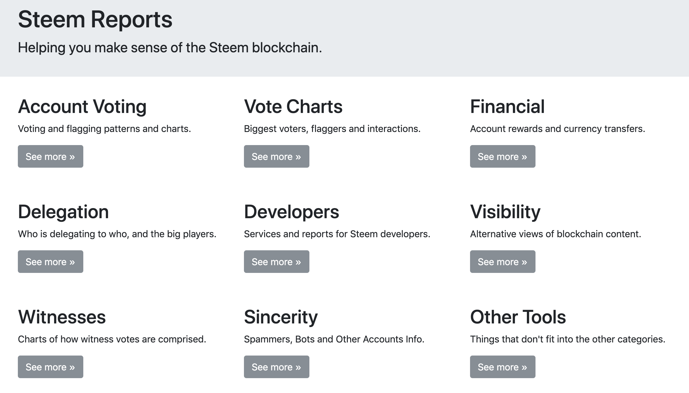 추가적으로 http://www.steemreports.com/에서는 임대 사항 확인 이외에도 계정 보팅 통계와 스팀, 스팀 달러 전송 기록 등과 관련한 여러가지 리포트 기능을 제공한다.