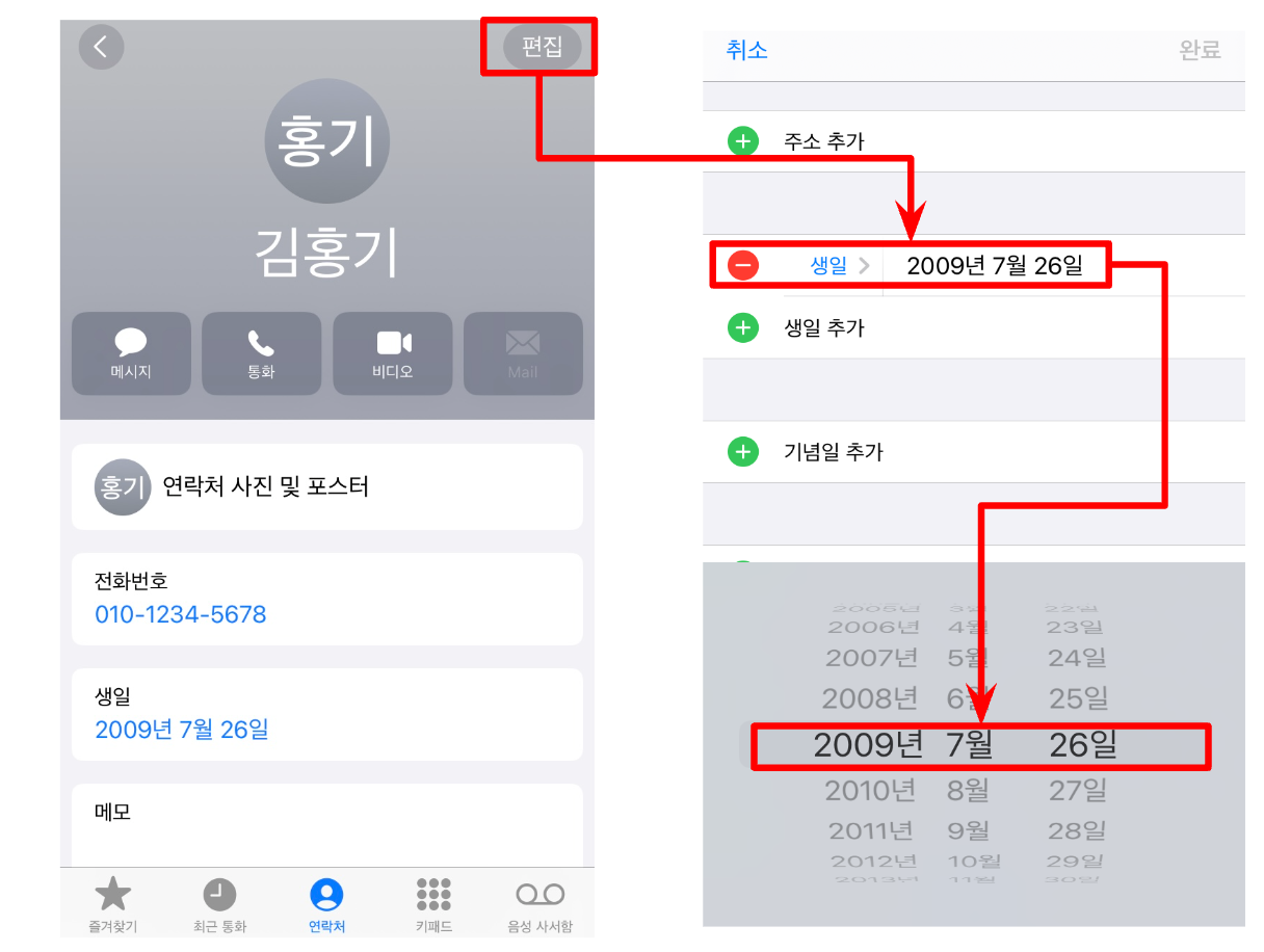 2. 아이폰 연락처에 양력 기념일 추가하기