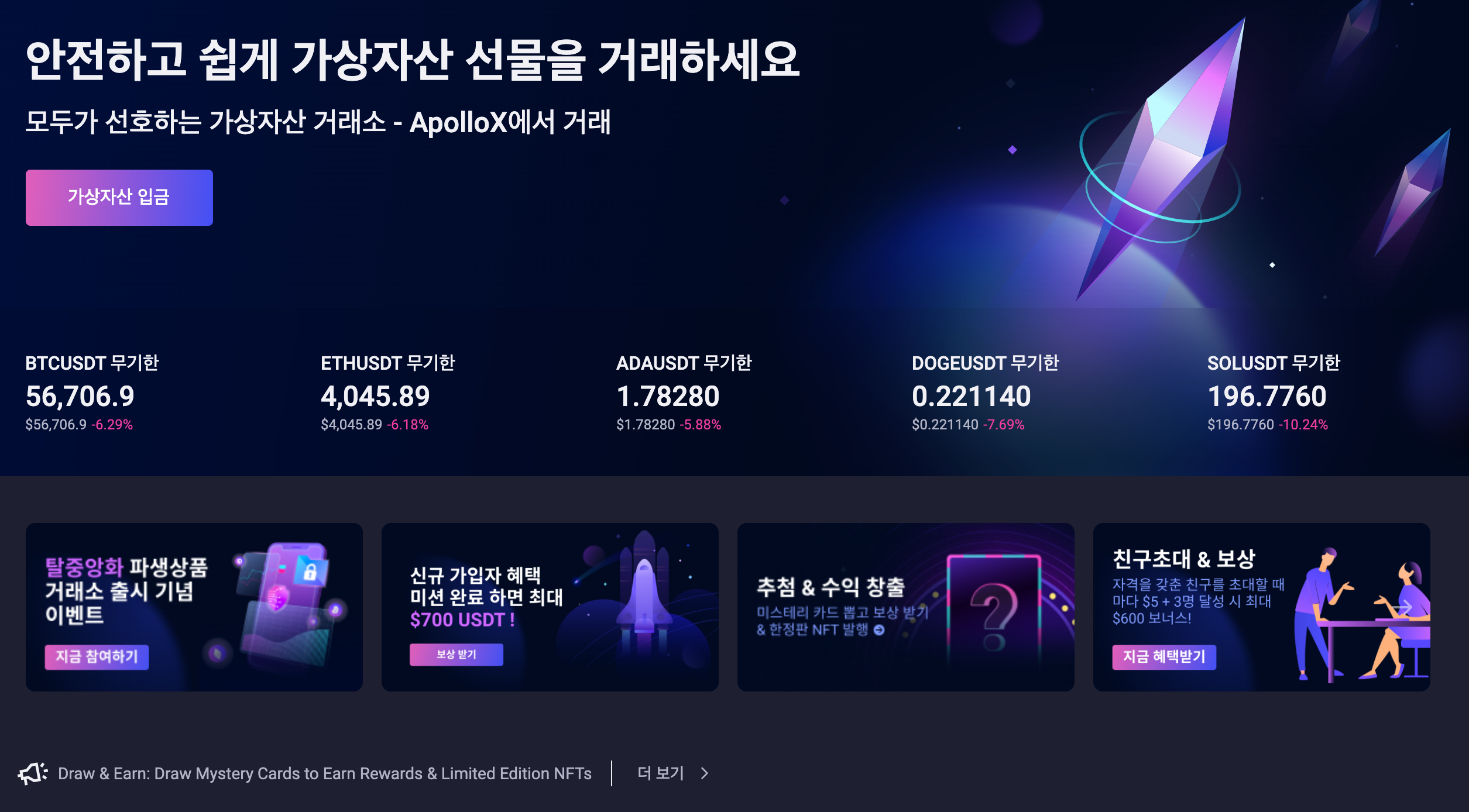 - 아폴로엑스 가입하기(수수료 50% 할인 클릭): https://www.apollox.com/discount50/