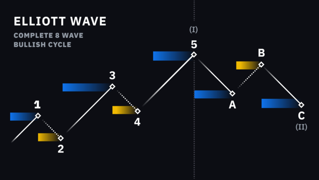 엘리엇 파동 이론(Elliott Wave Theory, EWT)은 자산 가격의 움직임이 특정한 순서와 패턴을 따른다고 가정하는 이론입니다. 엘리엇 파동 원칙에 따르면 시장은 심리 사이클를 따라 약세와 강세를 반복합니다. 엘리엇 파동을 활용하면 현재 시장 사이클과 추세를 파악할 수 있습니다.