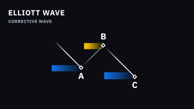 조정 파동은 3파 구조를 갖습니다. 조정 파동은 큰 상승 파동과 하락 파동 사이에서 발생하며, 종종 A, B, C로 명명됩니다. 동인 파동과는 달리, 조정 파동은 추세에 반대되는 움직임을 보이기 때문에 더 작은 경향이 있습니다.