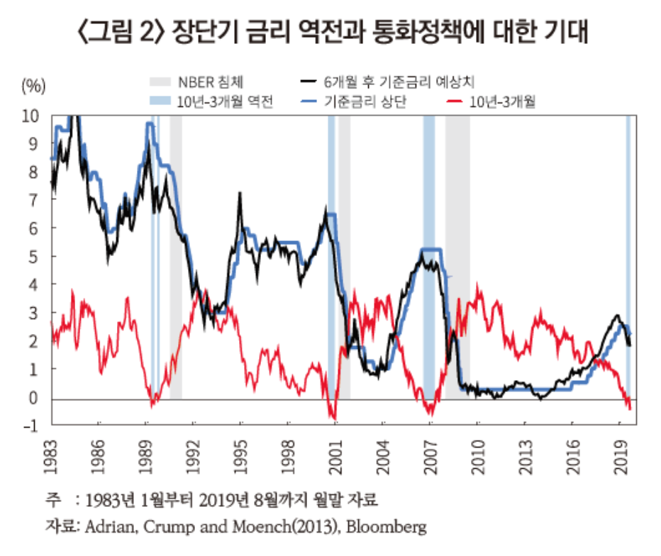 미국의 장단기 금리 역전은 경기침체 예측을 위한 중요한 지표 중 하나입니다. 현재의 금리 역전은 미중 무역분쟁과 관련되어 있어 경기침체 가능성에 대한 시장의 우려를 반영하고 있습니다.