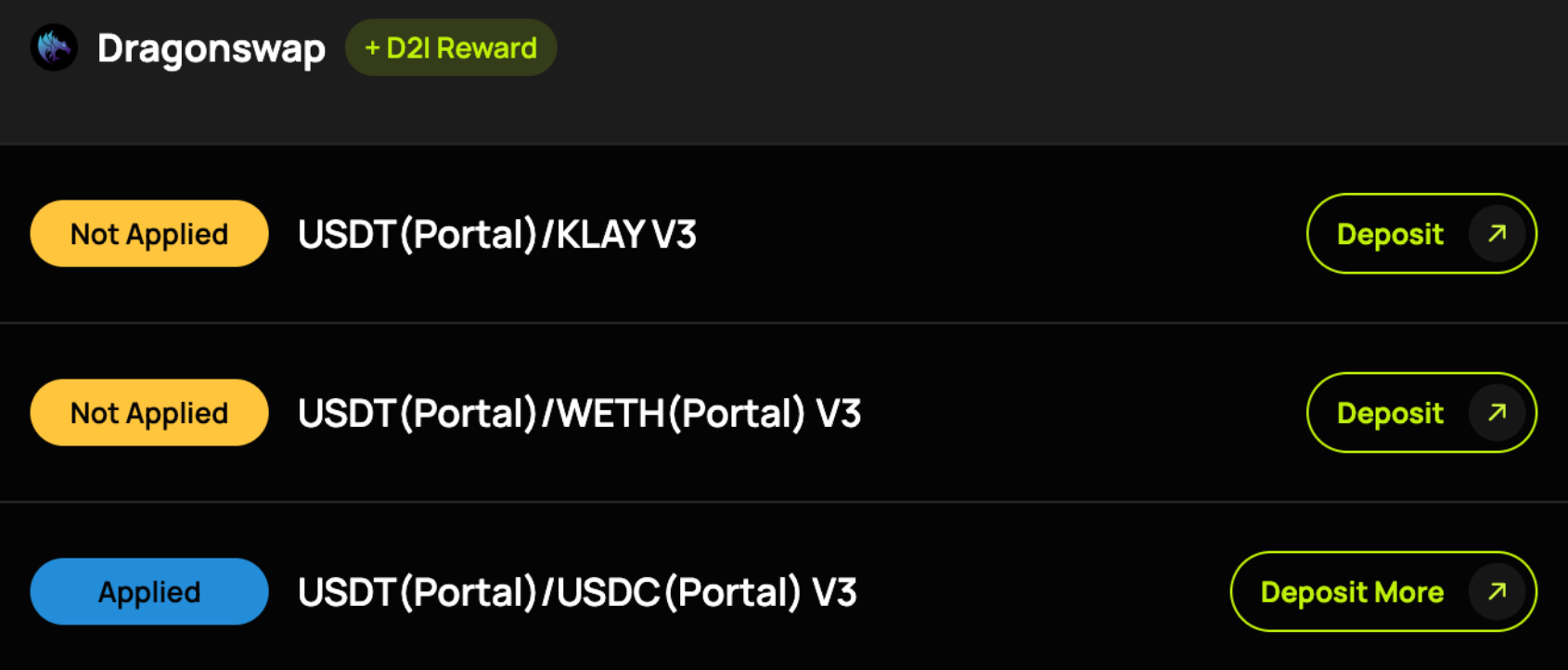 현재, 간단한 디파이 예치 미션이 진행되고 있으며, 각 DEX 프로젝트에 유동성을 제공하고 카이아($KAIA) 코인을 보상으로 받을 수 있습니다.