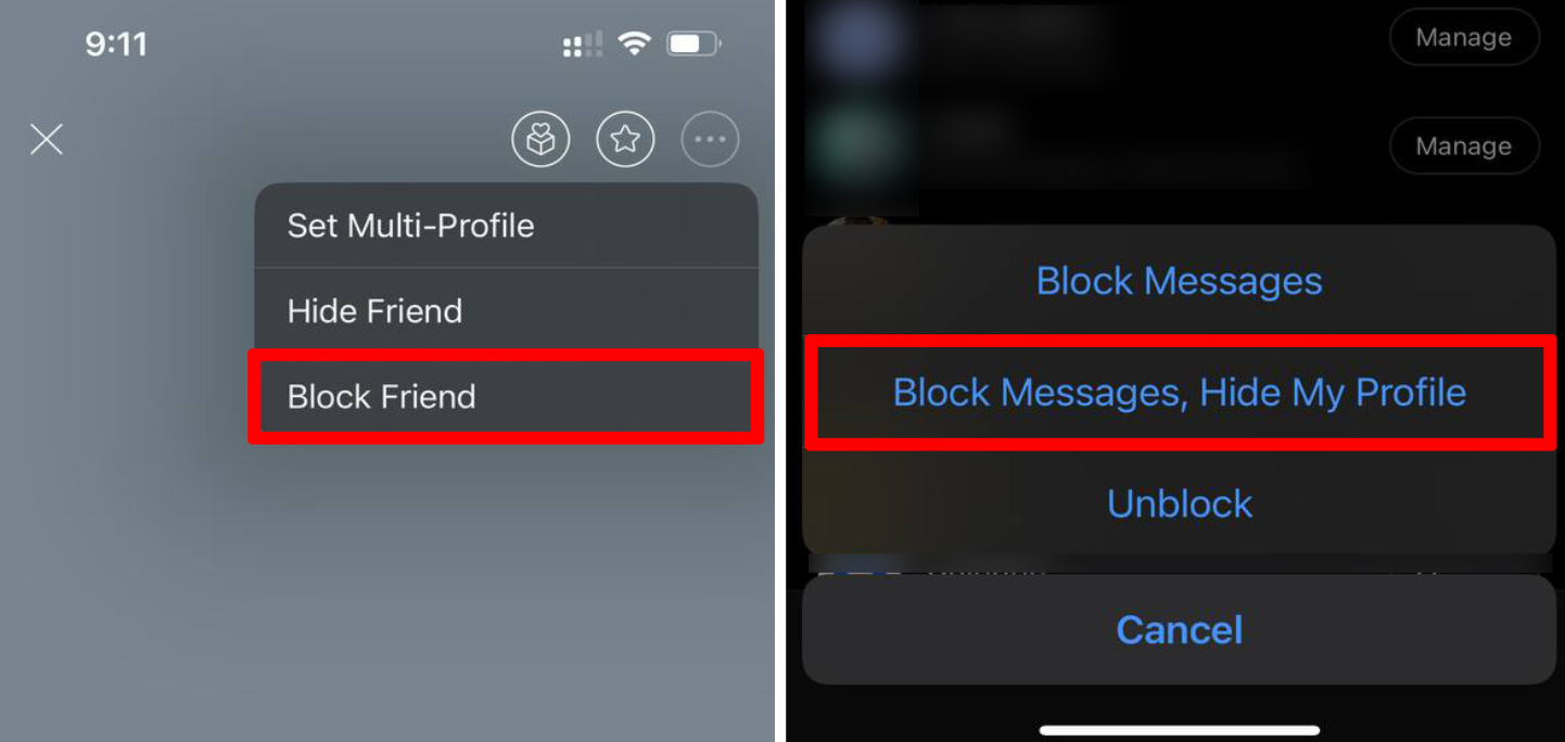 - 전체 차단 (메시지 및 프로필 비공개): 이 방법은 메시지뿐만 아니라, 친구 목록에서도 상대방이 보이지 않게 차단하는 것입니다. 프로필 사진이 기본 이미지로 보이며, 메시지 전송이 불가능합니다.