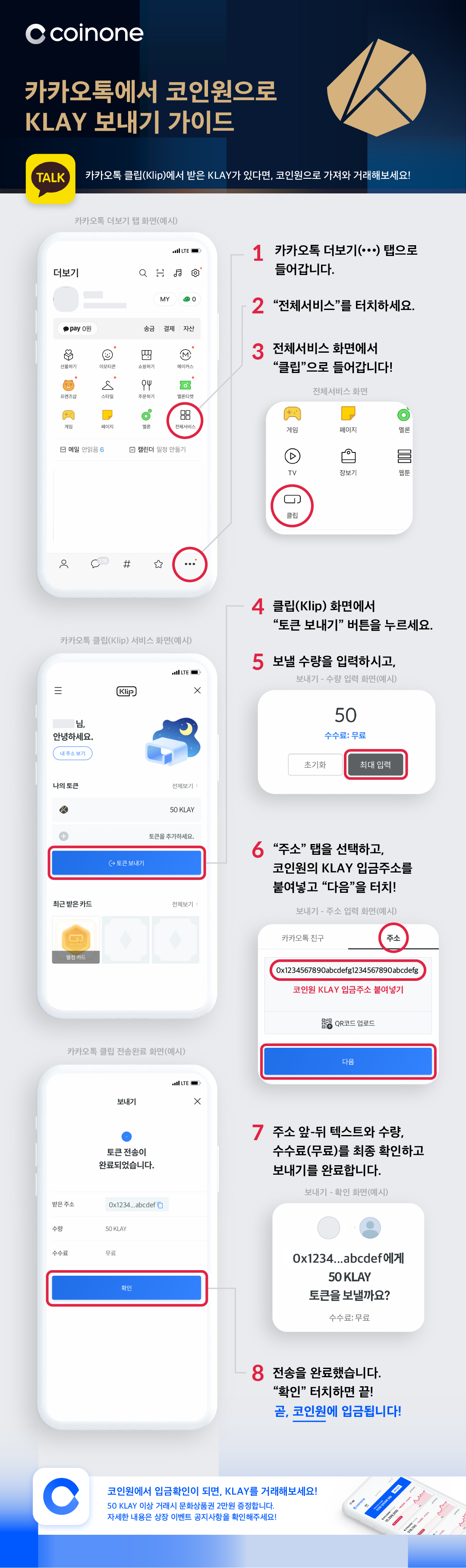 클립 지갑에서 코인원으로 클레이 전송해서 판매하는 방법