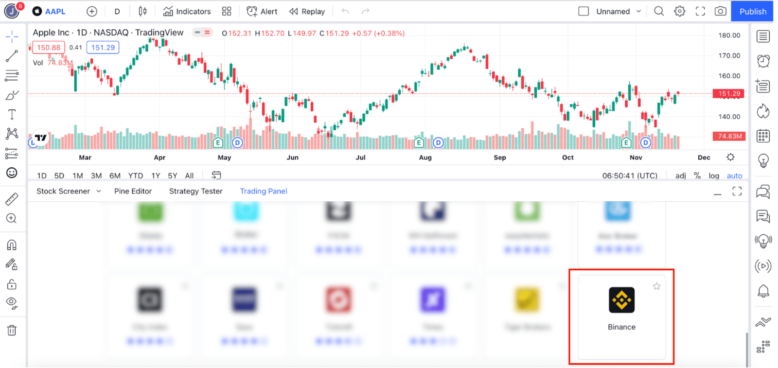 3단계: 트레이딩뷰 인터페이스를 사용하여 바이낸스 계정으로 거래