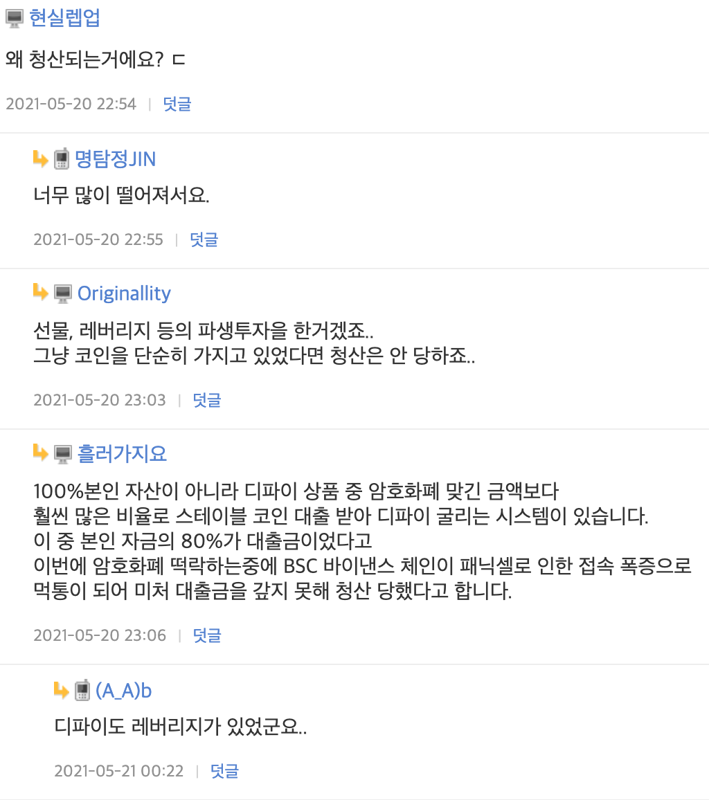 고란 기자님도 이러한 시장의 움직임에 대응을 하시지 못해서 39억을 청산을 당하신 것으로 보입니다. 물론, 기자님은 마진 거래를 하시진 않았지만 비너스라는 디파이 프로토콜에서 대출로 이자 농사를 짓다가 담보 자산 미달로 청산 되신거 같습니다. 다음은 기자님이 직접 남기신 글입니다.