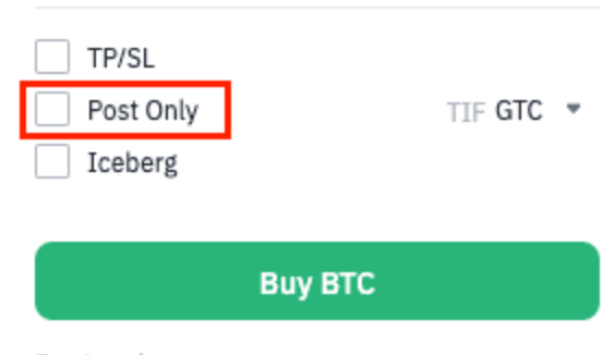 포스트 온리 주문은 지정가로만 체결되며, 메이커로 처리되지 않으면 거부되는 옵션입니다. 급격한 가격 변동이 있거나, 입력한 가격이 조건을 만족하지 않는 경우 주문이 실패할 수 있습니다.
