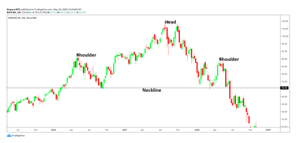 그렇다면 패턴이 완성됐다는 것은 무엇일까요? 이는 차트에 헤드와 숄더가 완벽하게 그려지고 가격이 넥라인 아래로 하락하기 시작하는 것을 의미합니다!