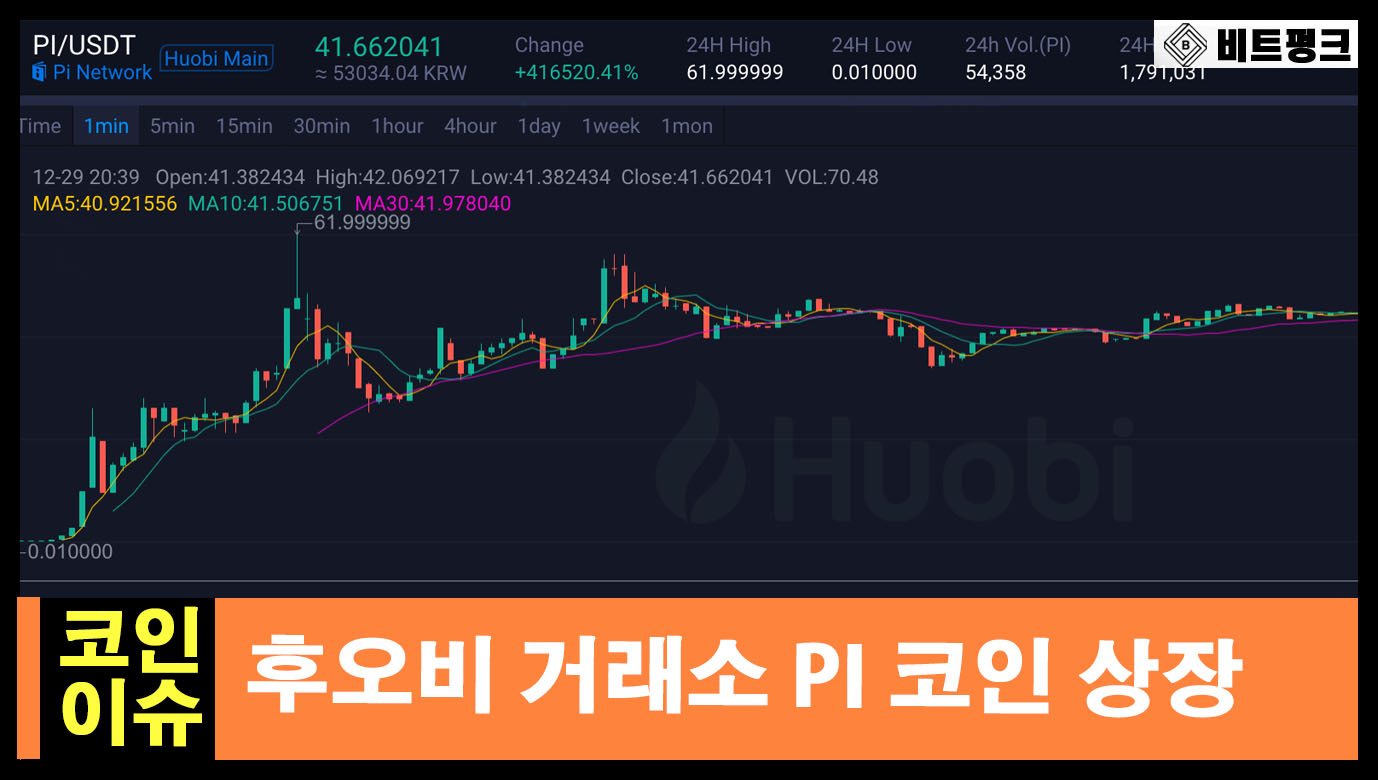 저스틴 선이 운영하는 후오비 거래소가 PI 코인을 상장했습니다. 상장가는 0.01달러. 그리고 상장 1시간이 지나고 최고 62달러를 찍었는데요. 상승률로만 따지자면 무료 60만%에 달하는 어마어마한 상승입니다. 현재는 소폭 (-20만%) 하락하여 약 40달러에 거래되고 있는데요. 문제가 있습니다.