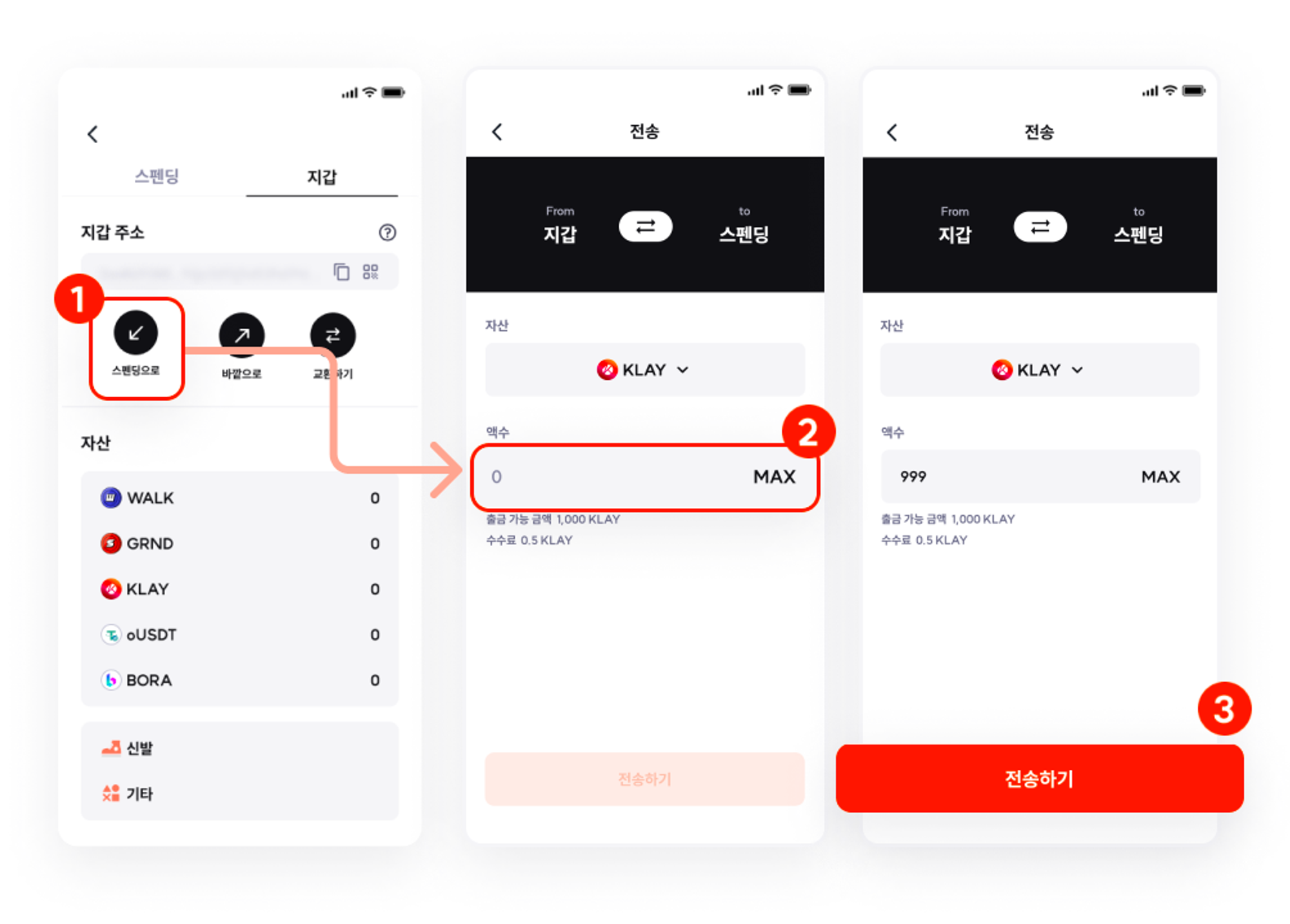 마지막으로 슈퍼워크 앱에서 신발을 구매하기 위해 클레이를 스펜딩 지갑으로 옮겨주셔야 합니다. 여기까지 하셨다면 어려운 과정은 모두 마치셨습니다.