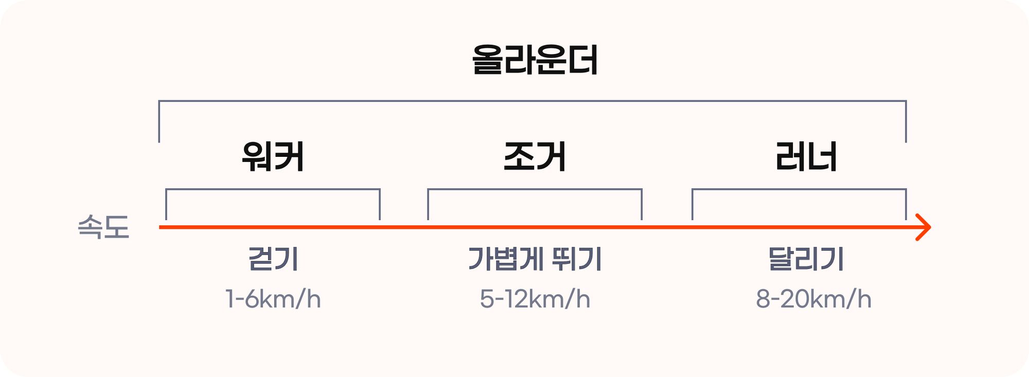 - 올라운더 (1~20km/h) - 속도 제한이 없으며 걷거나 달리는 모든 경우