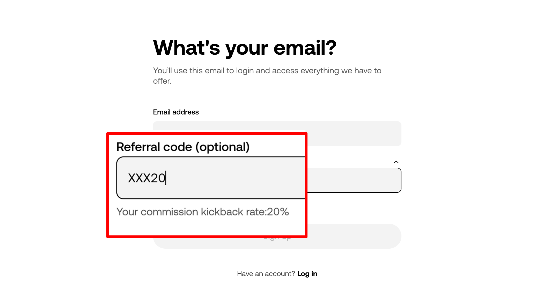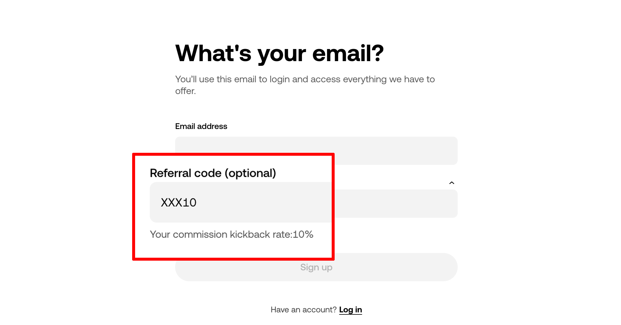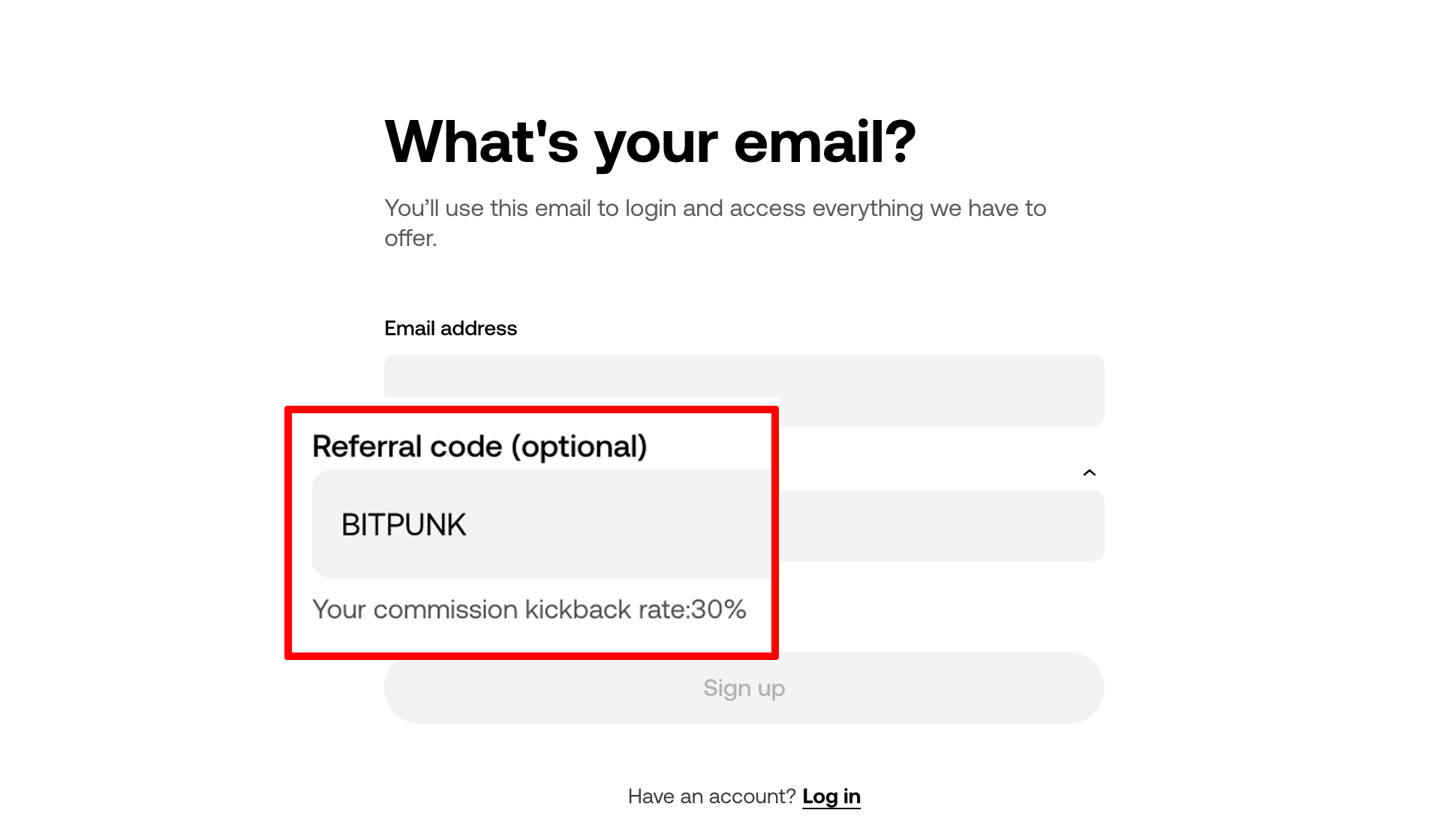 이때 반드시, 위 스크린샷과 동일한 코드 및 문구가 표시되는지 확인하셔야 합니다. 레퍼럴 코드 부분에 bitpunk와 아래에 "Your commision kickback rate: 30%"라는 문구가 보이시나요? 이렇게 되면 최대 할인이 잘 적용된 것입니다.