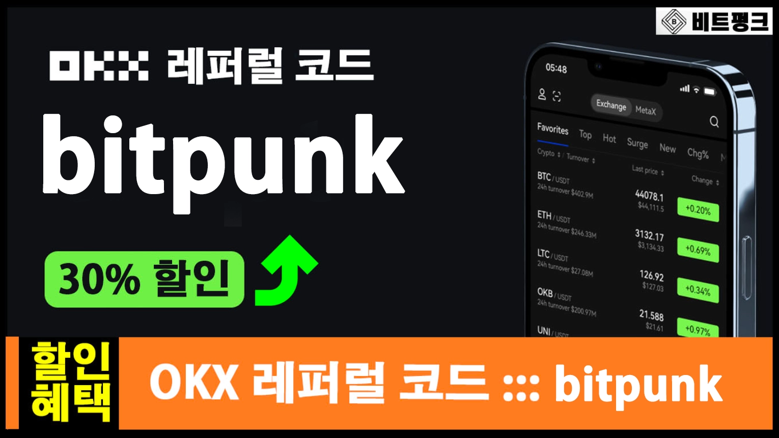안녕하세요. 비트펑크입니다. 오늘은 OKX 거래소 가입 시 레퍼럴 할인 코드 bitpunk를 입력하고, 수수료 30%를 할인받는 방법에 대해 안내해드리고자 합니다.