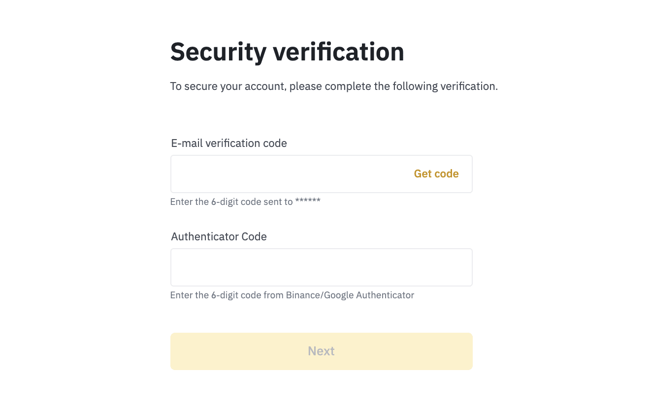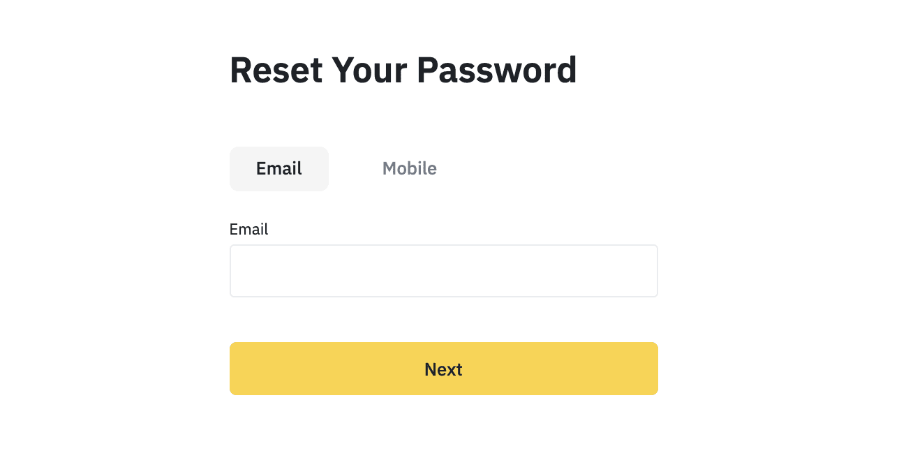 바이낸스 가입 때 사용한 계정 이메일 또는 휴대전화 번호를 입력하고 [Next] 버튼을 클릭합니다.