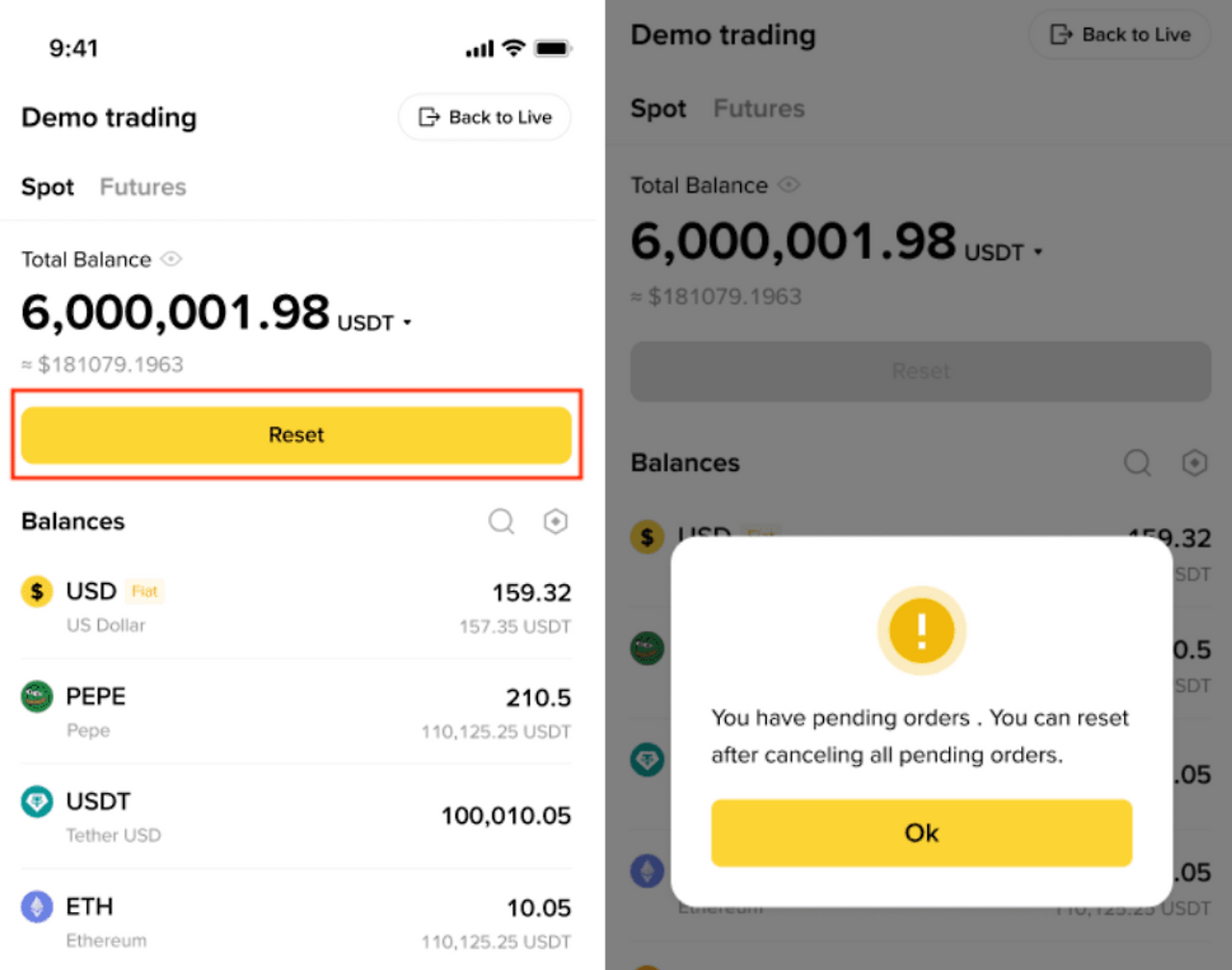 바이낸스 데모 트레이딩 기능을 사용하면, 실제 본인의 자금 없이도 거래소로부터 가상의 자산을 지원받아 거래를 연습 또는 테스트해볼 수 있습니다.