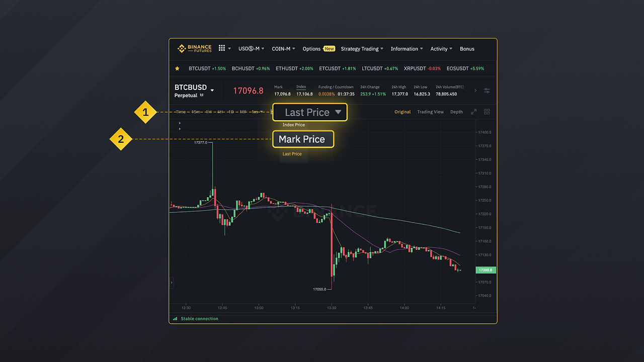 바이낸스 선물 거래에는 2가지 가격인 'Last Price'와 'Mark Price'가 존재합니다. 'Last Price'는 현재 가격을 의미하며, 이는 자산이 현재 바이낸스에서 거래되고 있는 가격입니다.
