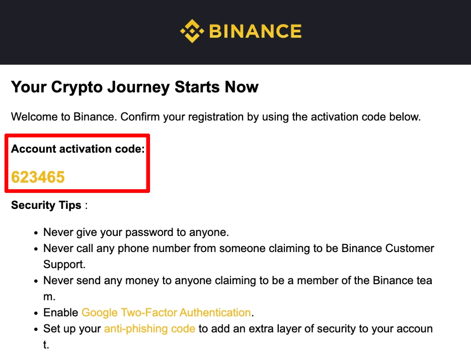 바이낸스에서 발송한 인증 메일이 도착해있을 것입니다. 가입 시 입력한 이메일을 열어 아래와 같이 인증 코드 6자리 숫자를 확인해주세요.