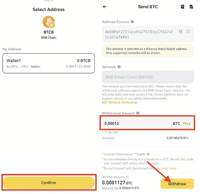 - 최대 7일 이내에 BTCB 출금이 완료됩니다.