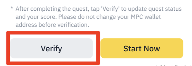 스테이킹 후 메가드랍 퀘스트 페이지로 이동하여 [Verify] 버튼을 눌러주세요. 초록색으로 확인 버튼이 뜨면 완료된 것입니다.