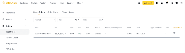 또는, 상단 메뉴에서 [Orders] → [Spot Order] → [Open Orders]로 이동하여 더 많은 대기 주문 정보를 확인할 수 있습니다.