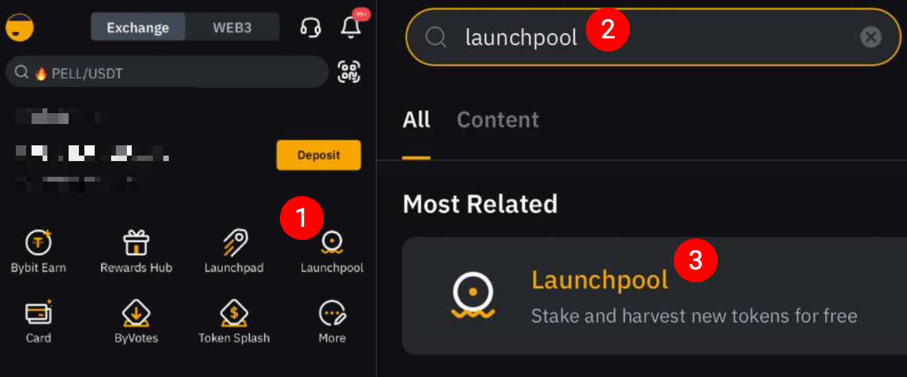 또는 위와 같이 검색창에 'launchpool'이라고 검색하시거나, 'Trade' - 'SpotX' - 'Launchpool'의 경로로 런치풀로 이동하실 수도 있습니다.