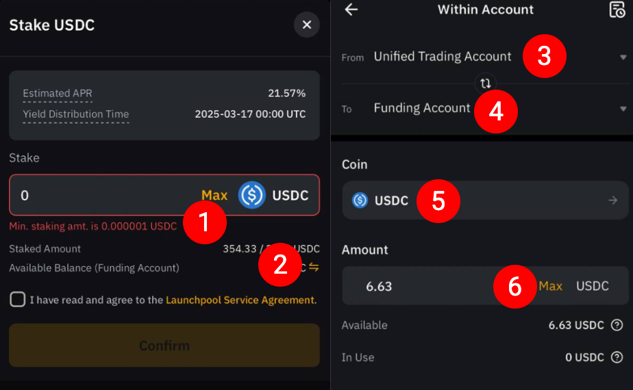만약, 런치풀 상품에 스테이킹을 하려고 하는데 참여가 안 된다? 그러면 90% 이상의 확률로 '펀딩 계정(Funding Account)'이 아닌 다른 곳에 자산이 있기 때문일 확률이 높습니다. 아래와 같이 자산을 '펀딩 계정'으로 이동해주신 다음 스테이킹을 다시 해주시면 됩니다.